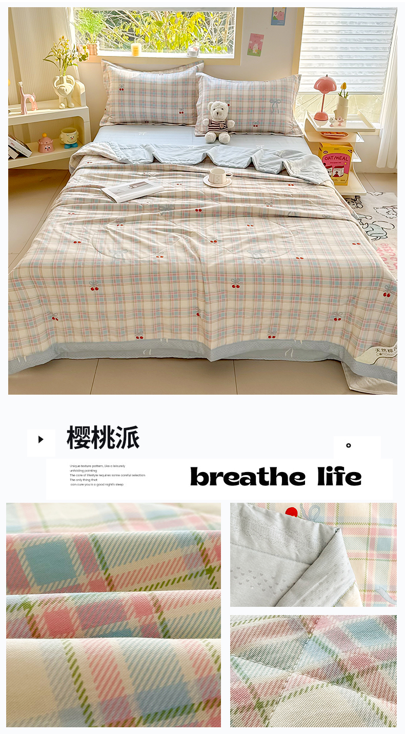 (总)栩裕纺织 2025新款全棉双层纱床盖三件套四件套,可可甜心粉,梦寐花都,抹茶小团子-咖,茉莉清风-粉,木映-绿,暮冬-紫,甜音少女-桔,樱桃奶盖-粉