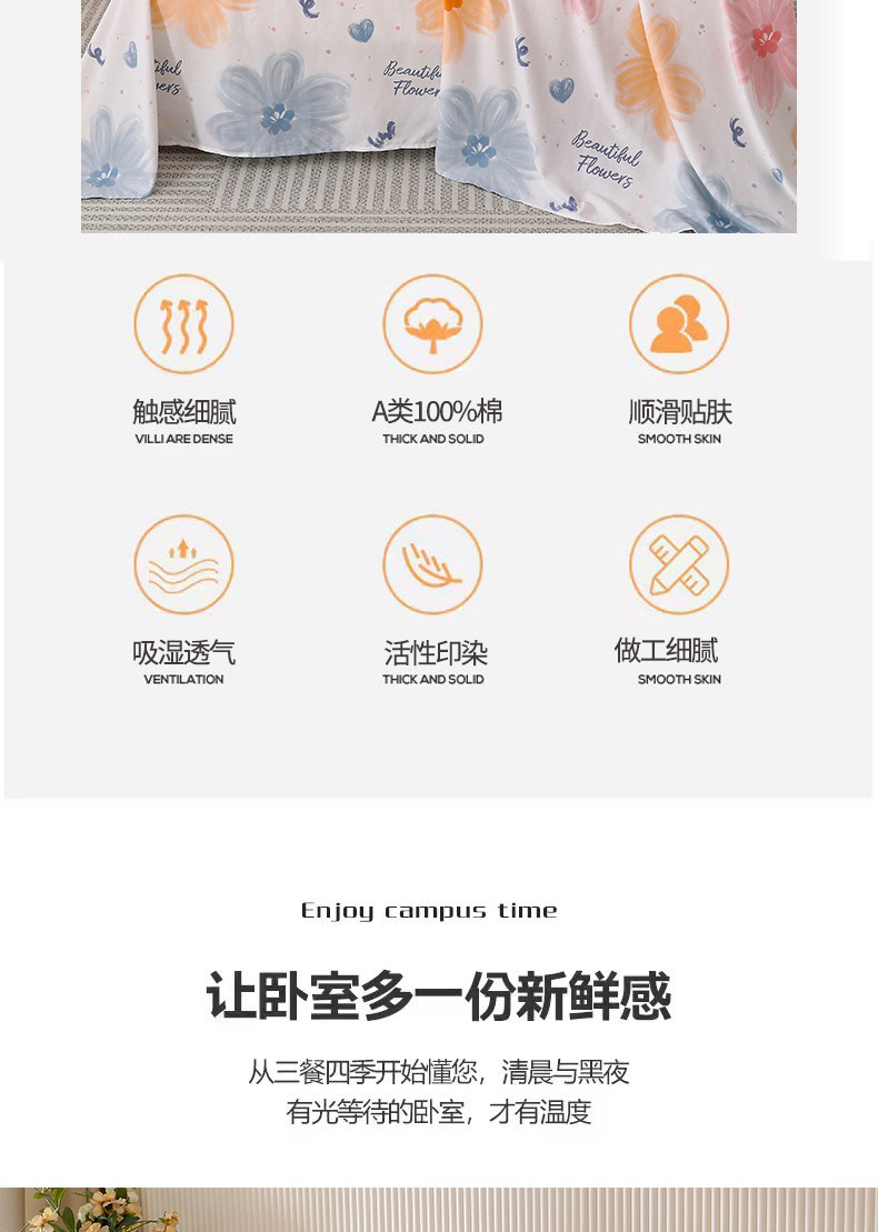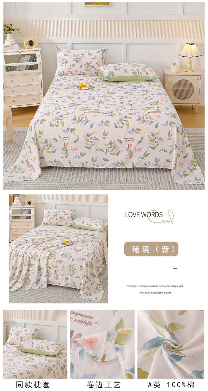 商品名称:宇彬家纺 2025直播新款13070全棉纯棉印花双人单床单枕套三件套喷气小清新简约学生被单 秘境(新)
