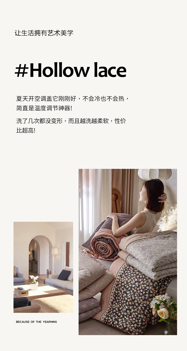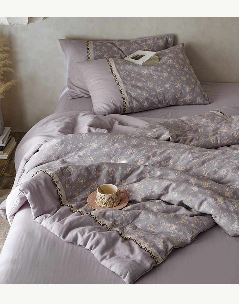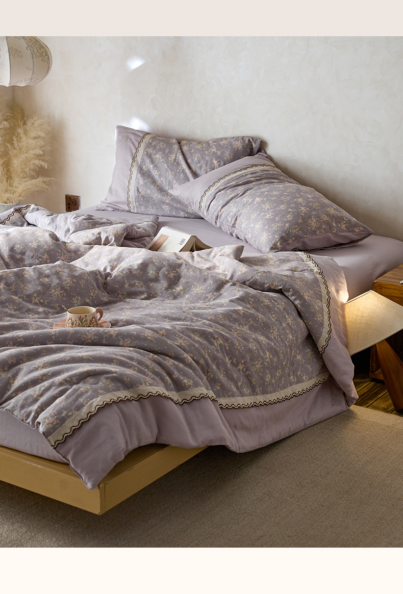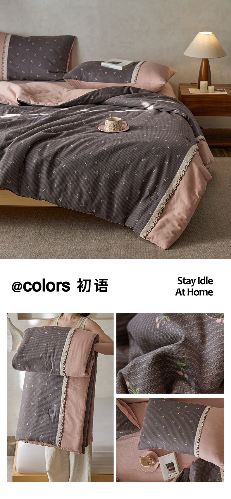 安莱生活 2025新款全棉纯棉双层纱复古花边款夏被夏凉被空调被四件套 紫茉