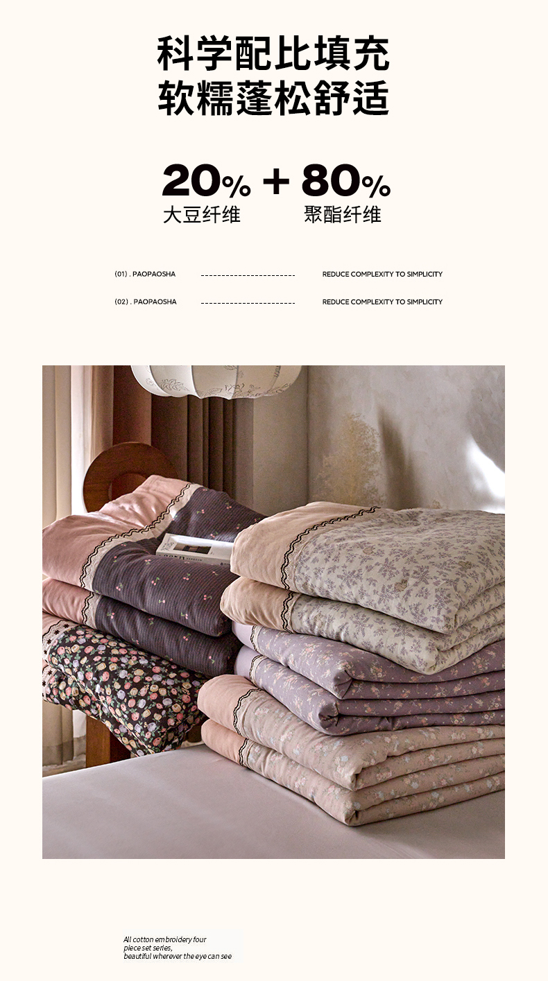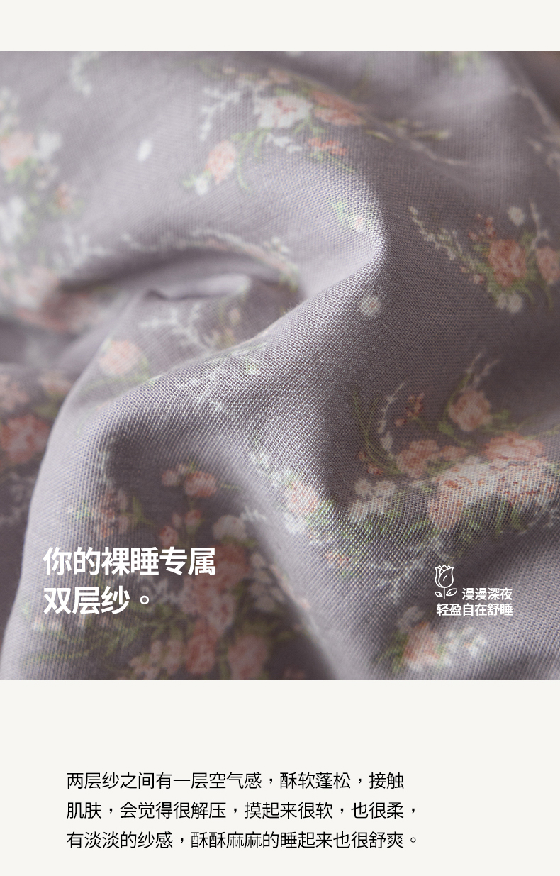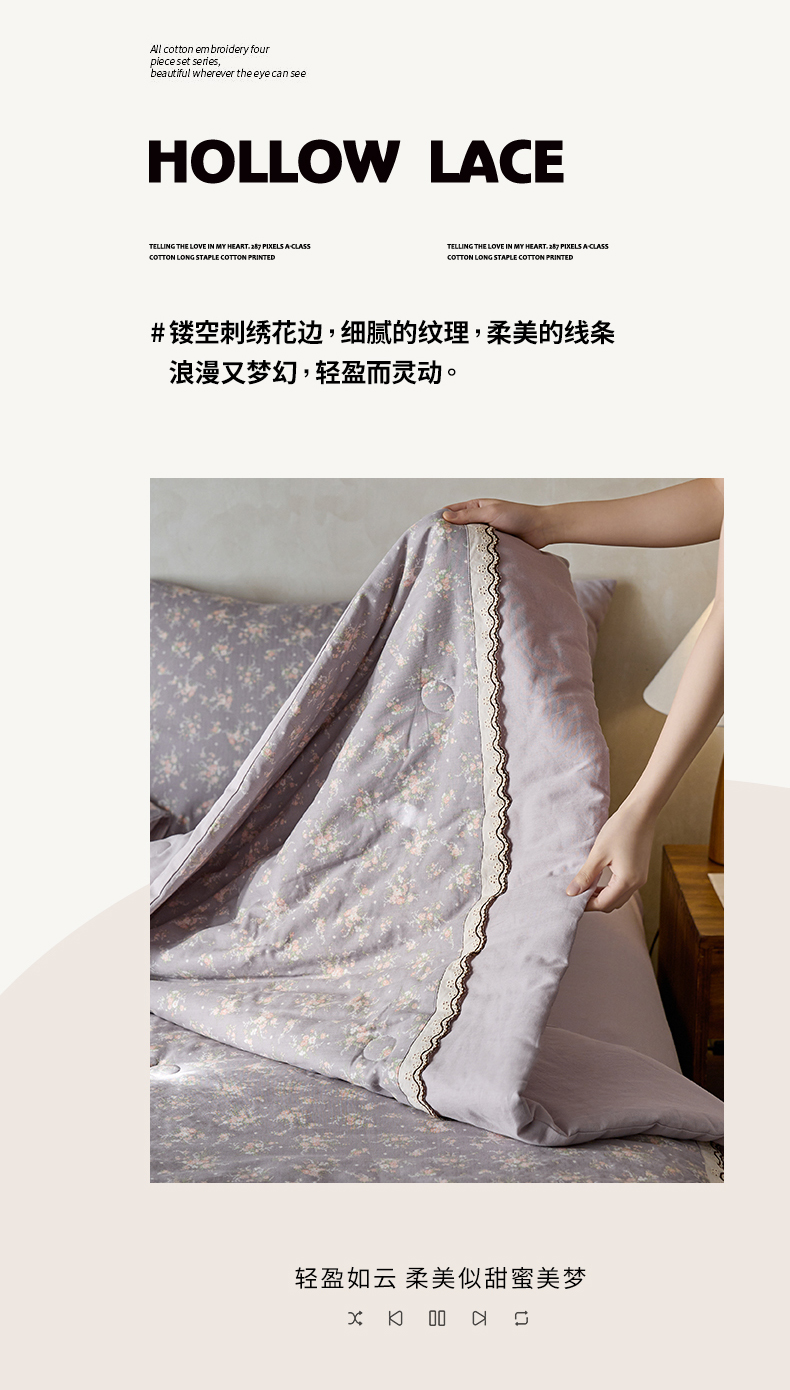 商品名称:安莱生活 2025新款全棉纯棉双层纱复古花边款夏被夏凉被空调被四件套 紫茉