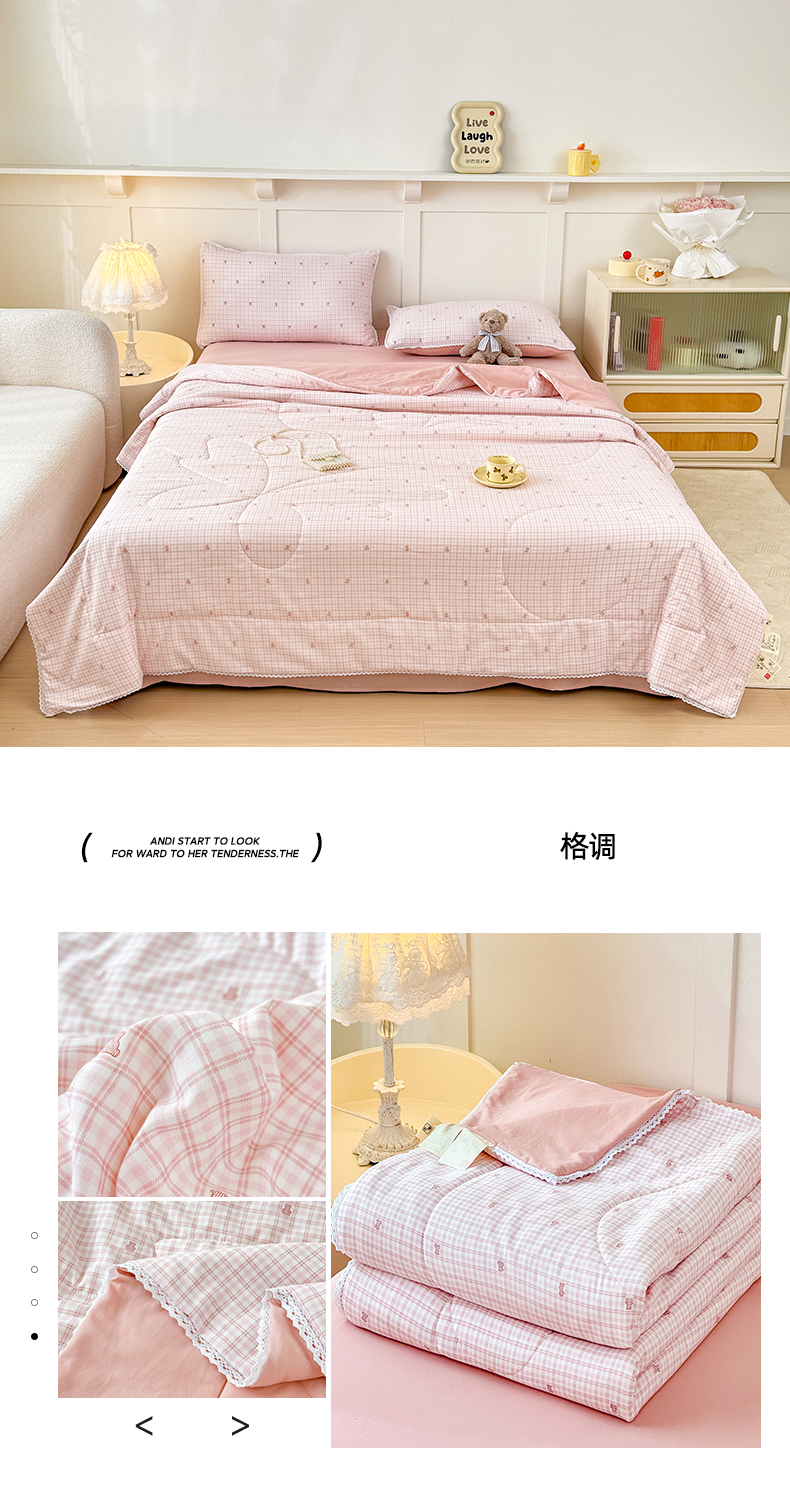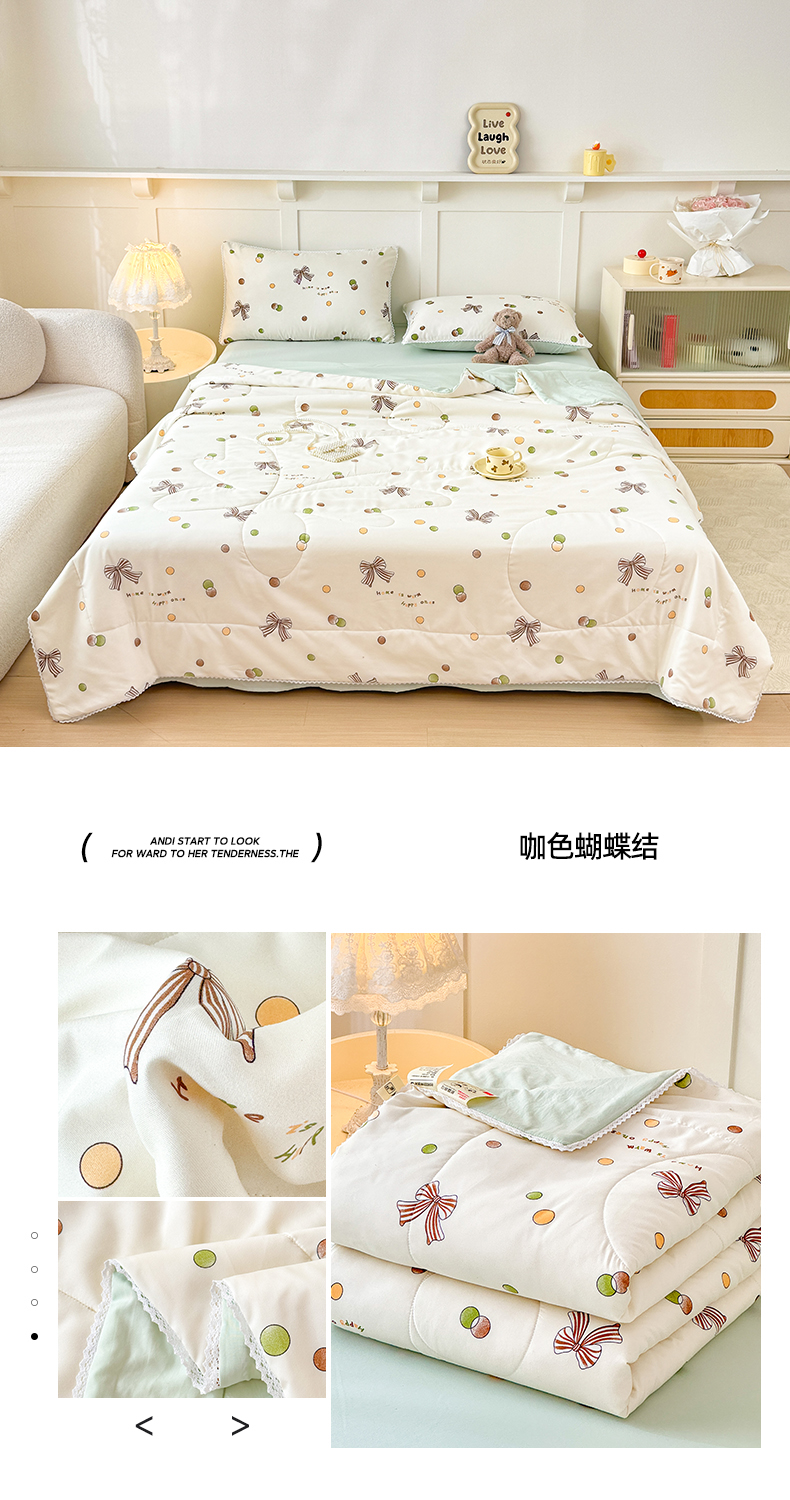 • 91家纺网 家纺一手货源 找家纺 (总)仁凯家纺 2025新款A类针织棉双层纱100%新疆棉花花边夏凉被(包检测)(提供买家秀),格调,花海,咖色蝴蝶结,可爱熊,玫瑰兔,蘑菇森林,倾心南瓜,绅士熊,紫色葡萄