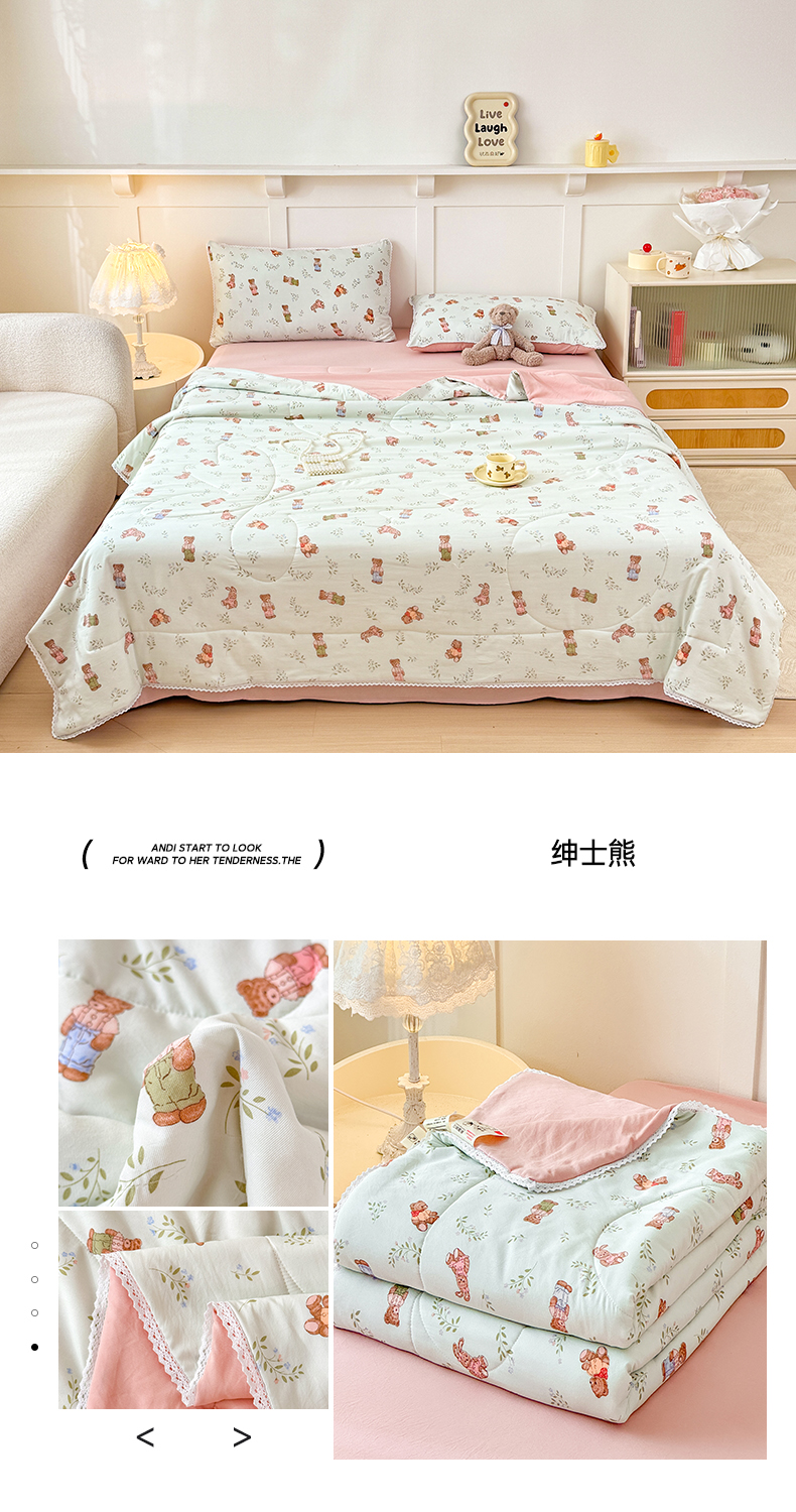 • 91家纺网 家纺一手货源 找家纺 仁凯家纺 2025新款A类针织棉双层纱100%新疆棉花花边夏凉被(包检测)(提供买家秀) 可爱熊