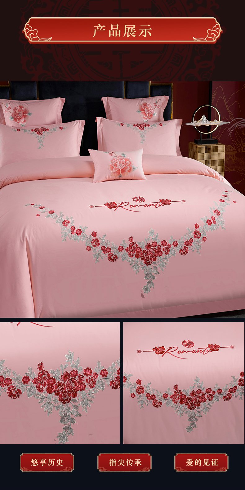 当前位置: 91家纺网 > 商品网购 > 床品套件 > 四件套 > 婚庆四件套 > 洽想家 2025新款全棉刺绣粉玉色婚庆四件套多件套(控价销售最低不低于288元) 花田喜事-玉粉