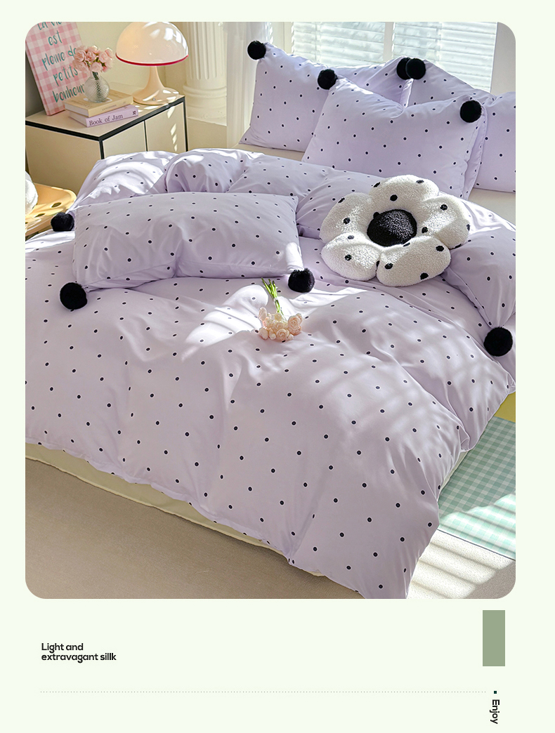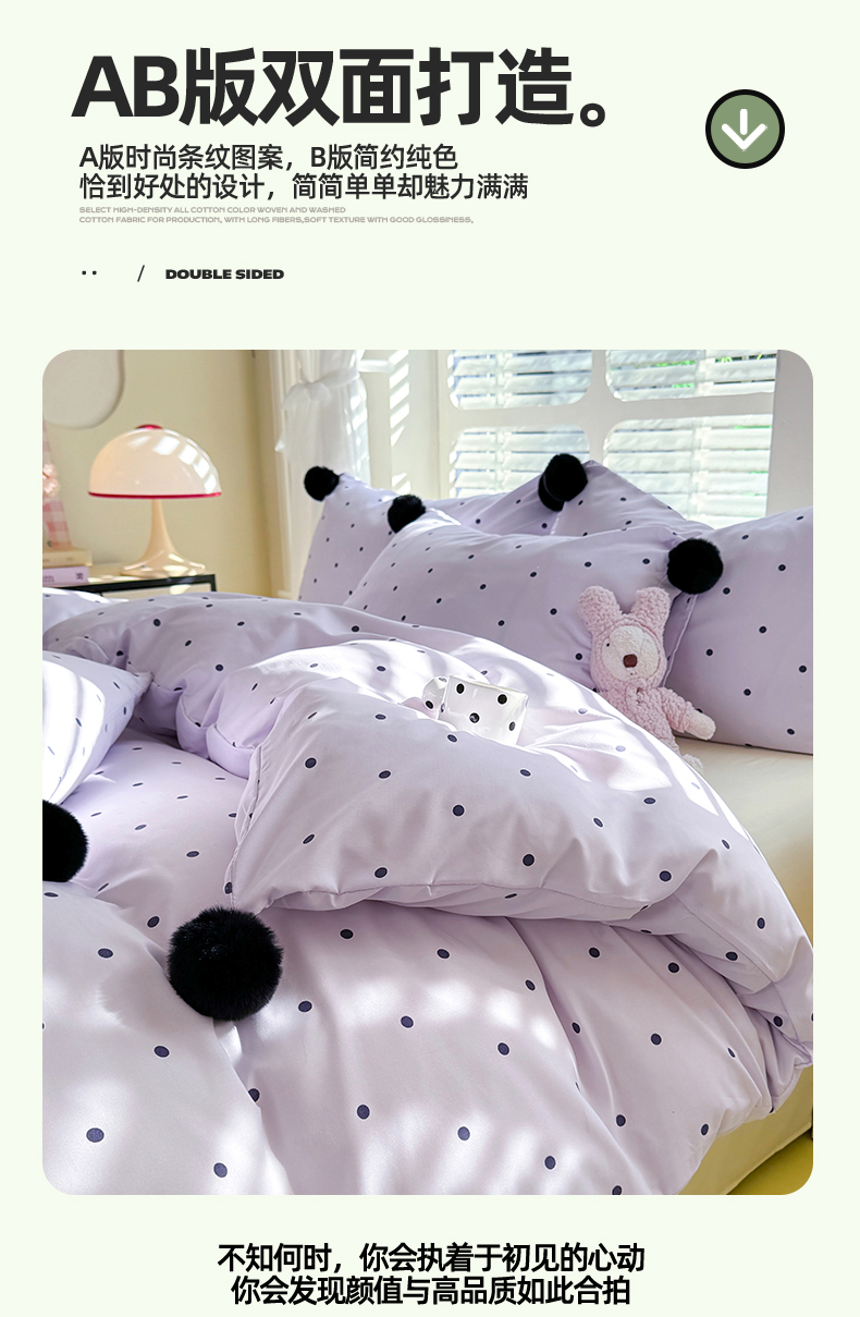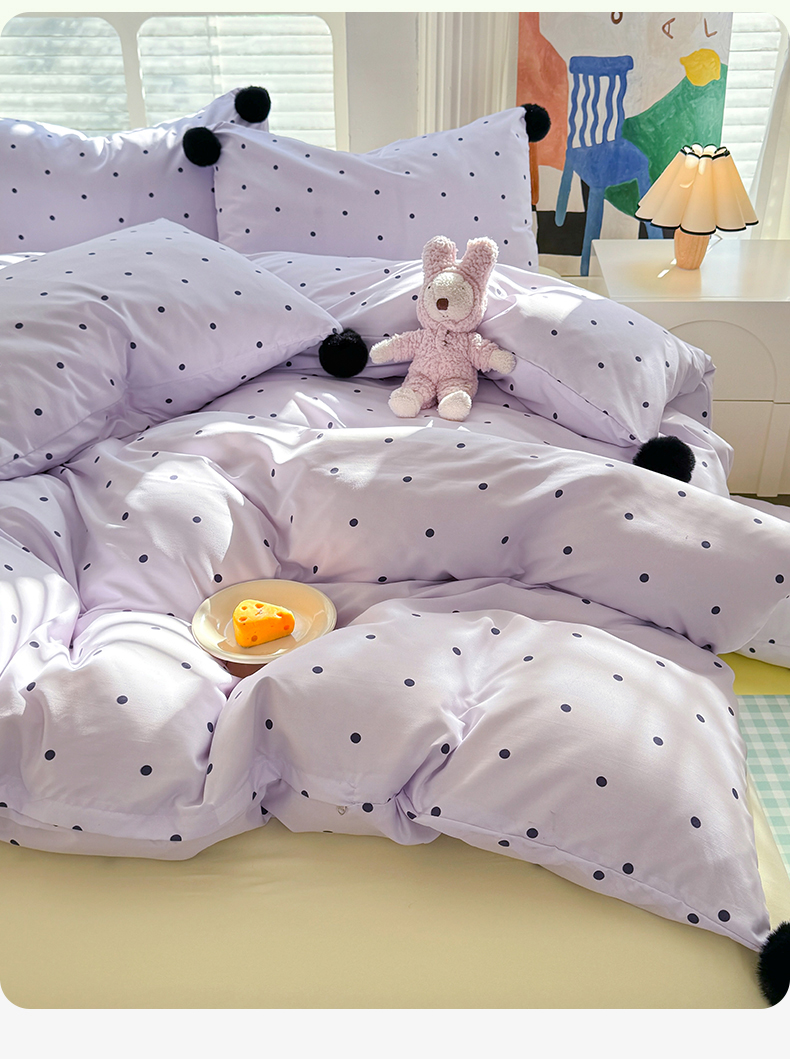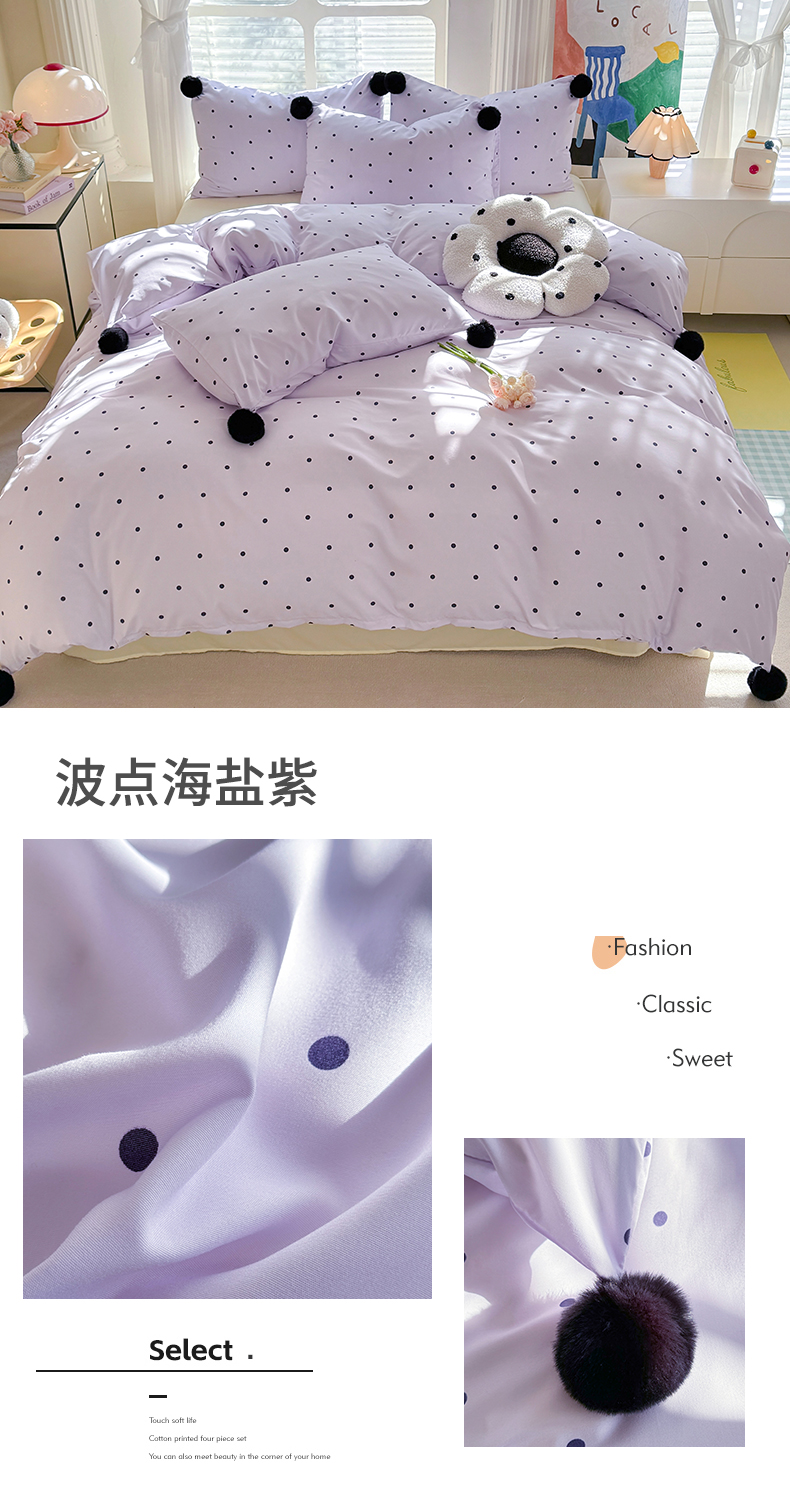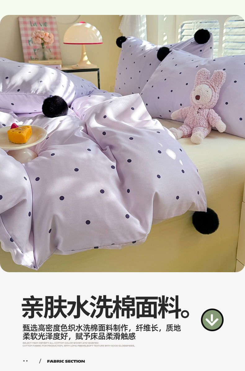 多品家纺 2025新款超柔水洗棉奶油系毛球款单被套 波点海盐紫