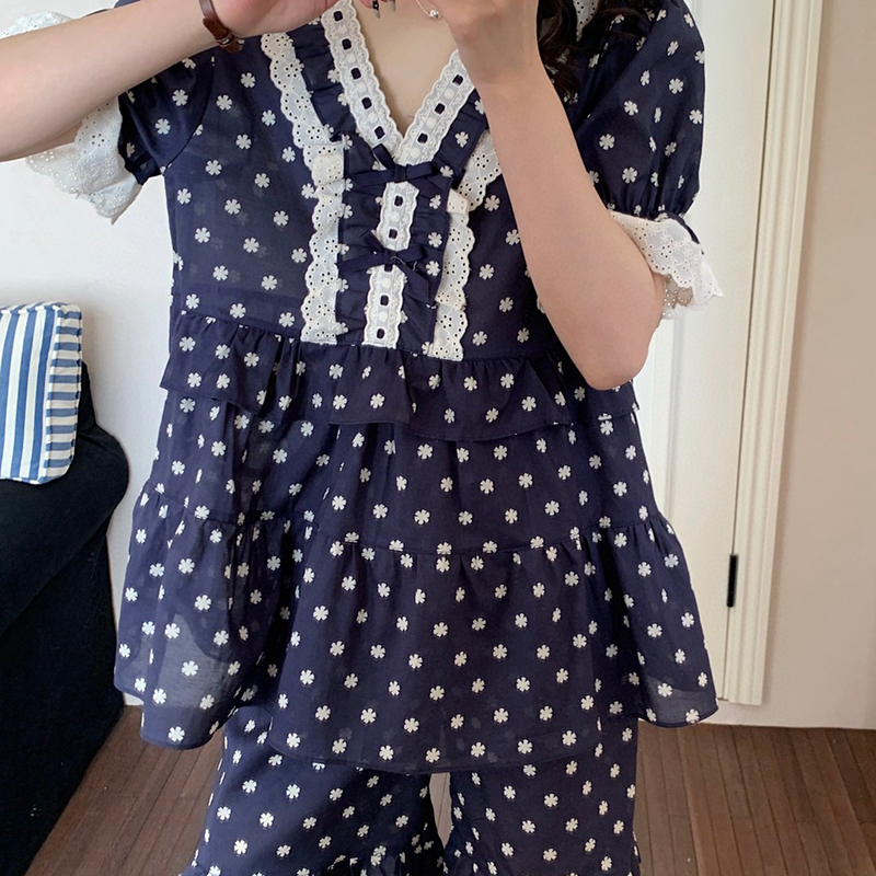 (总)妍景家居生活馆 2025新款25639-蕾丝绣花V领套装