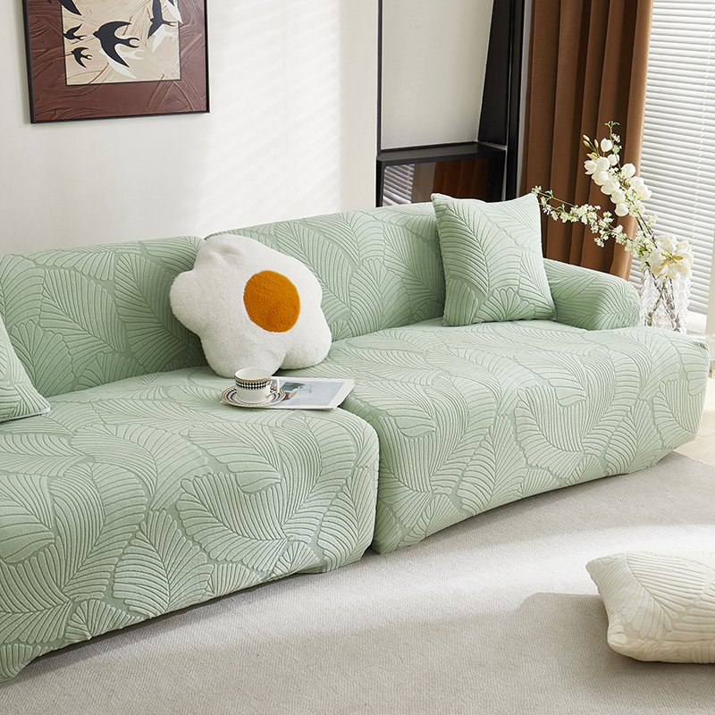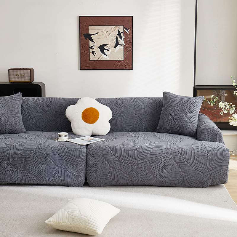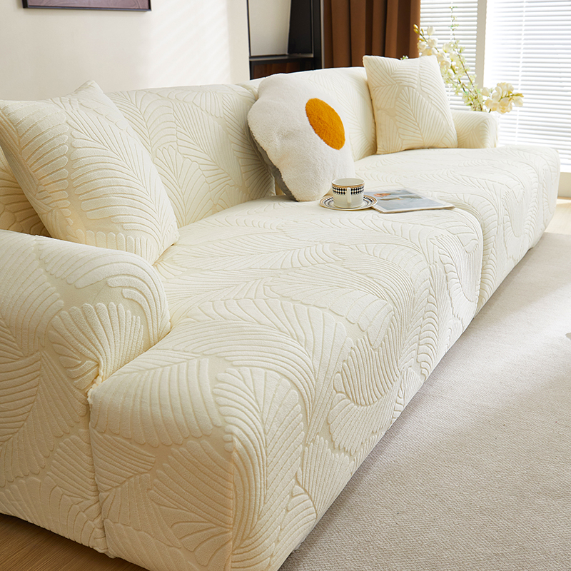 丝绮鹿 2025新款雕花绒大叶子沙发套松紧款(直排) 米白