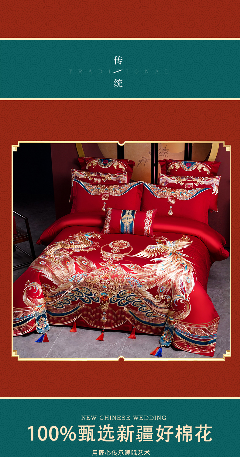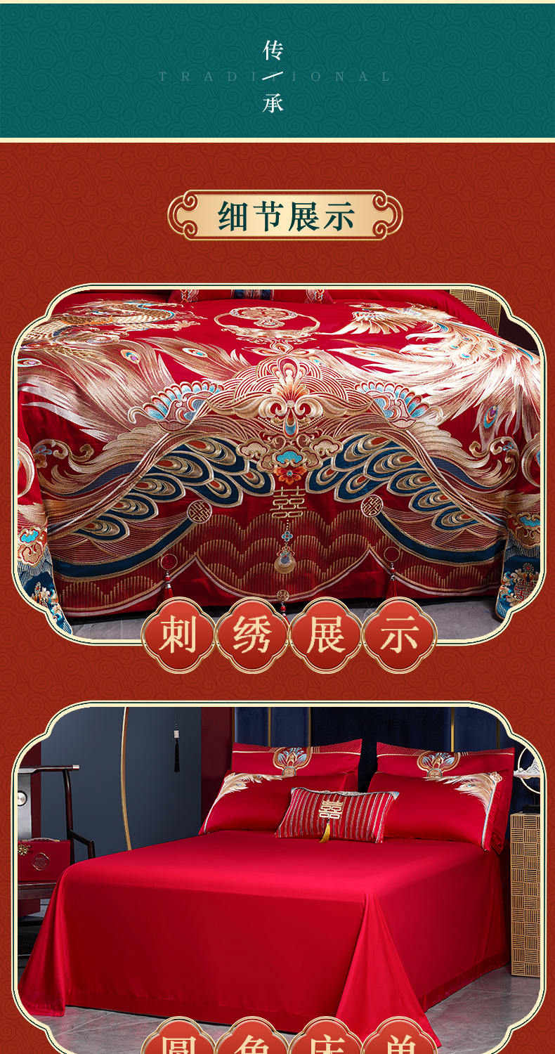 当前位置: 91家纺网 > 商品网购 > 床品套件 > 四件套 > 婚庆四件套 > (总)芊囍纺2025新款双面长绒棉提花婚庆四件套