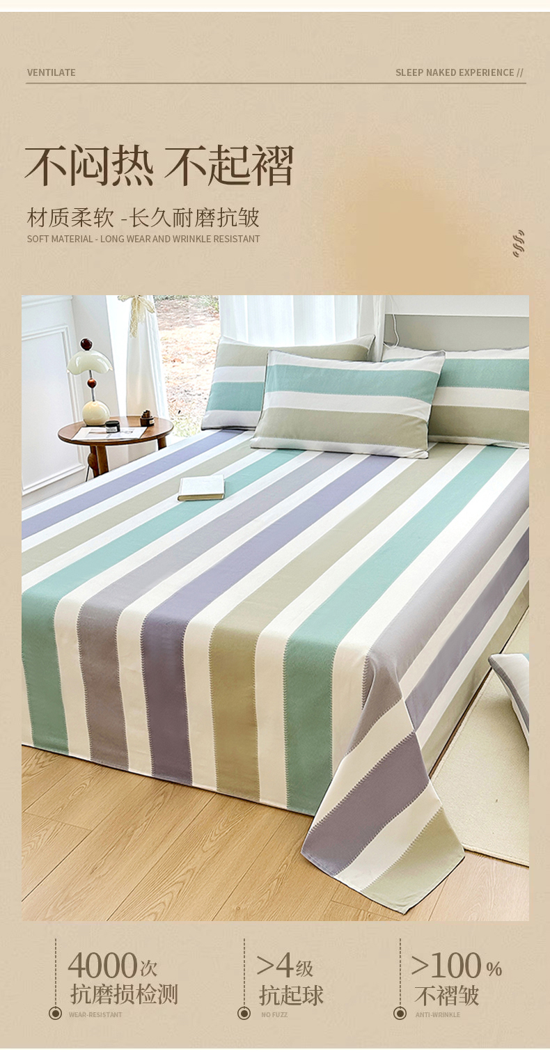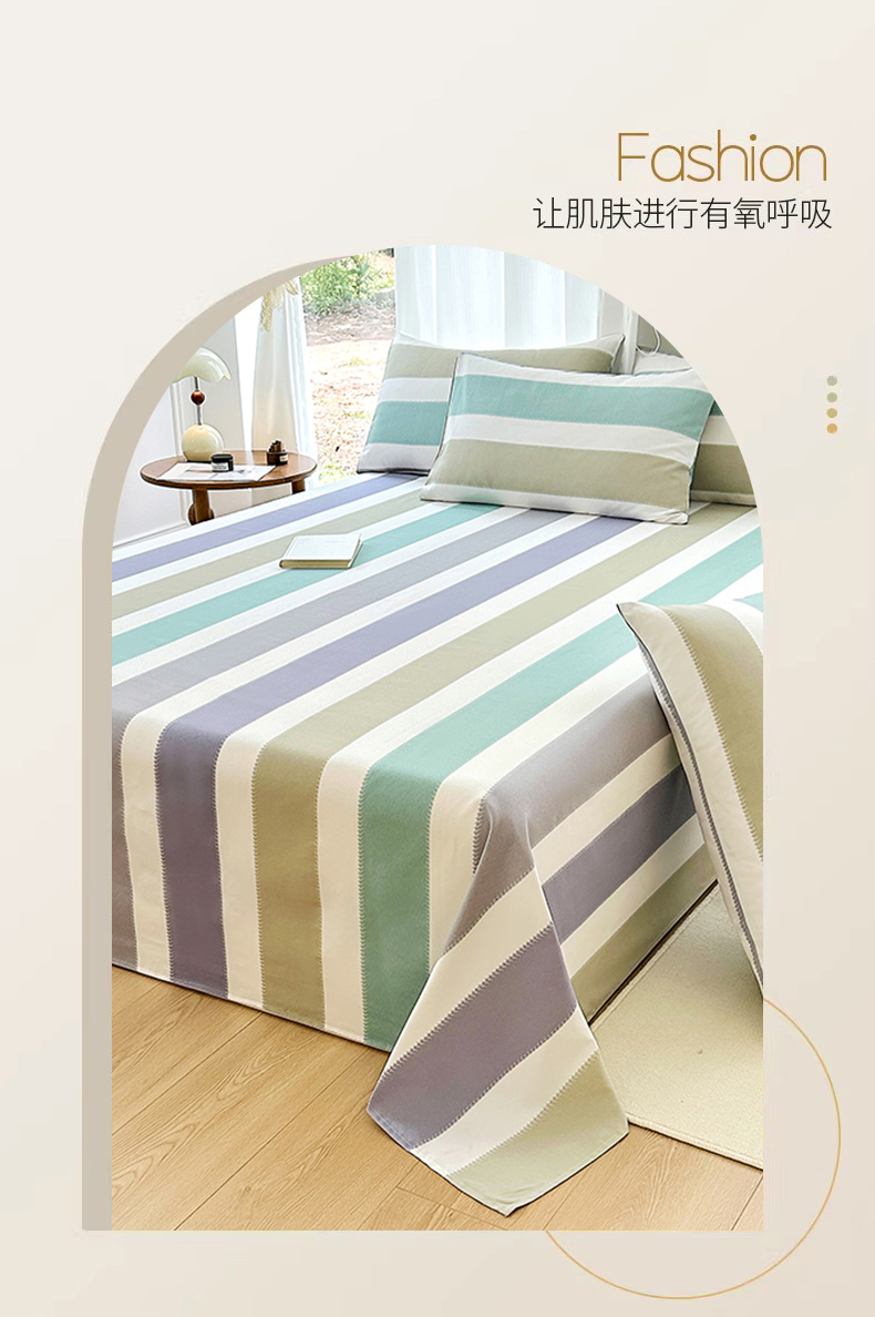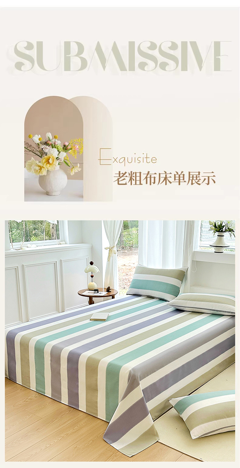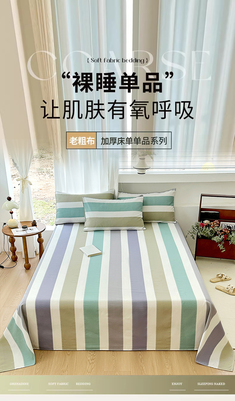 • 91家纺网 家纺一手货源 找家纺 家贝爱2025原棉印花老粗布床单凉席三件套 纳吉竖条