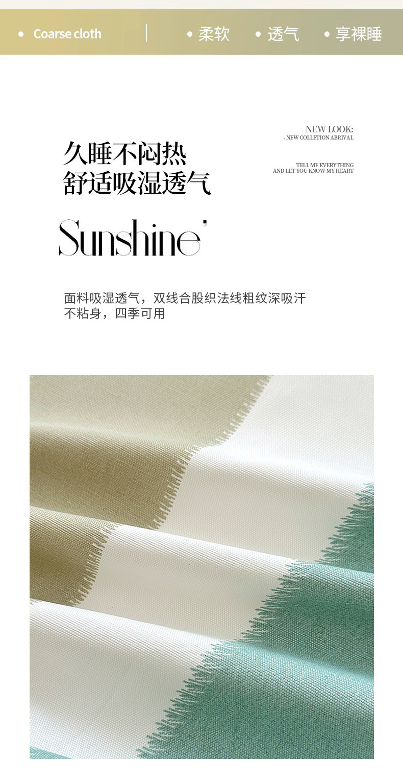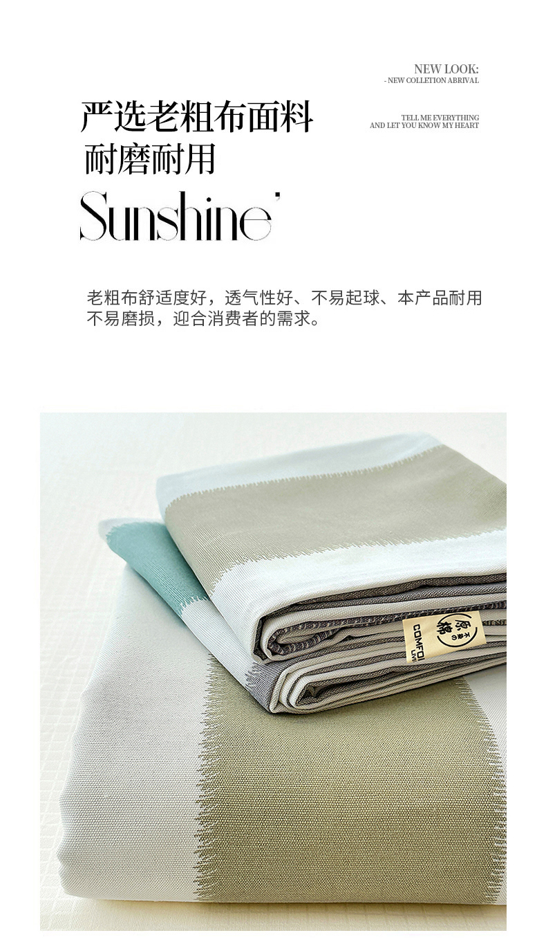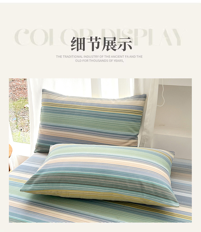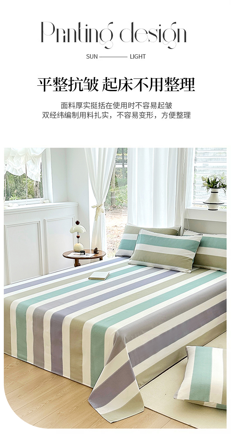 • 91家纺网 家纺一手货源 找家纺 家贝爱2025原棉印花老粗布床单凉席三件套 纳吉竖条