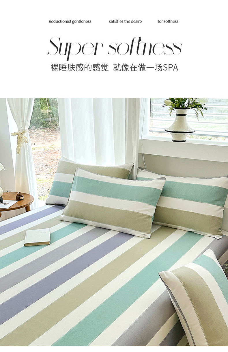 家贝爱2025原棉印花老粗布床单凉席三件套 纳吉竖条