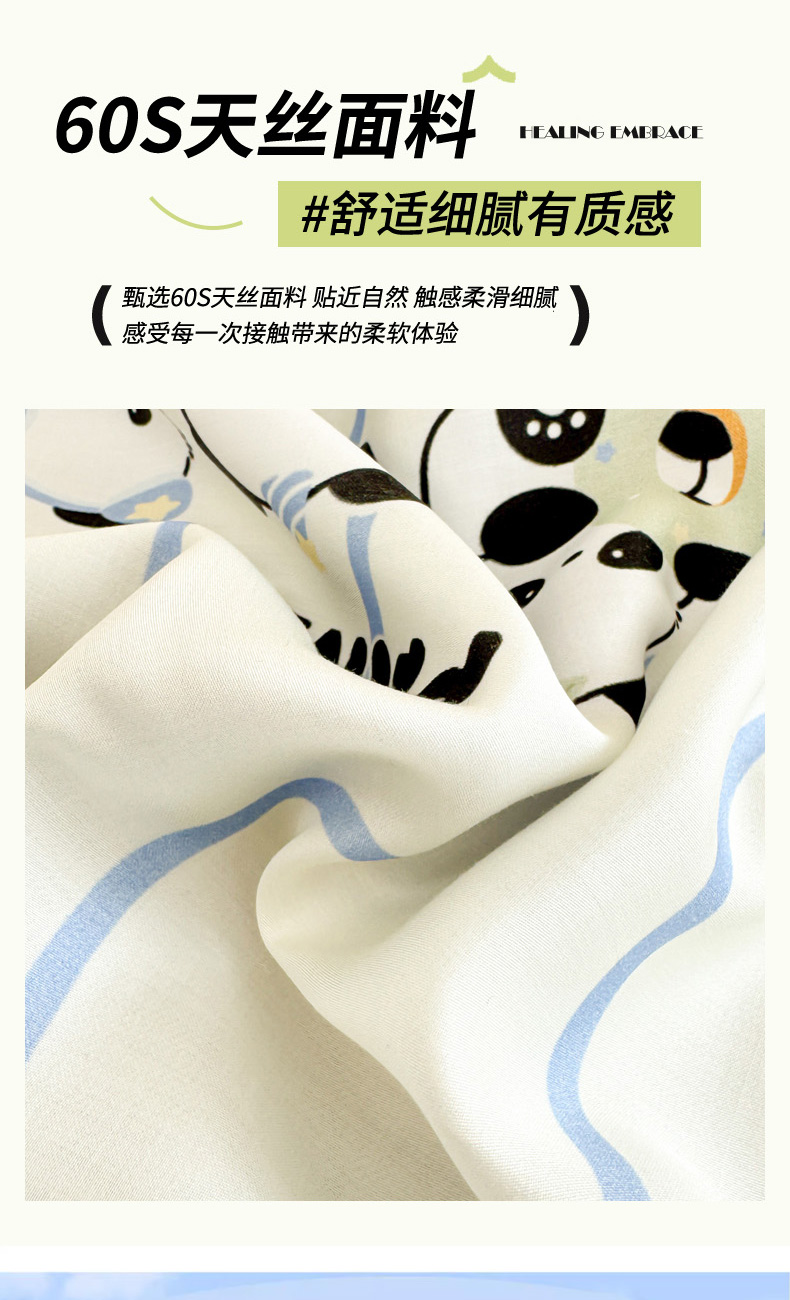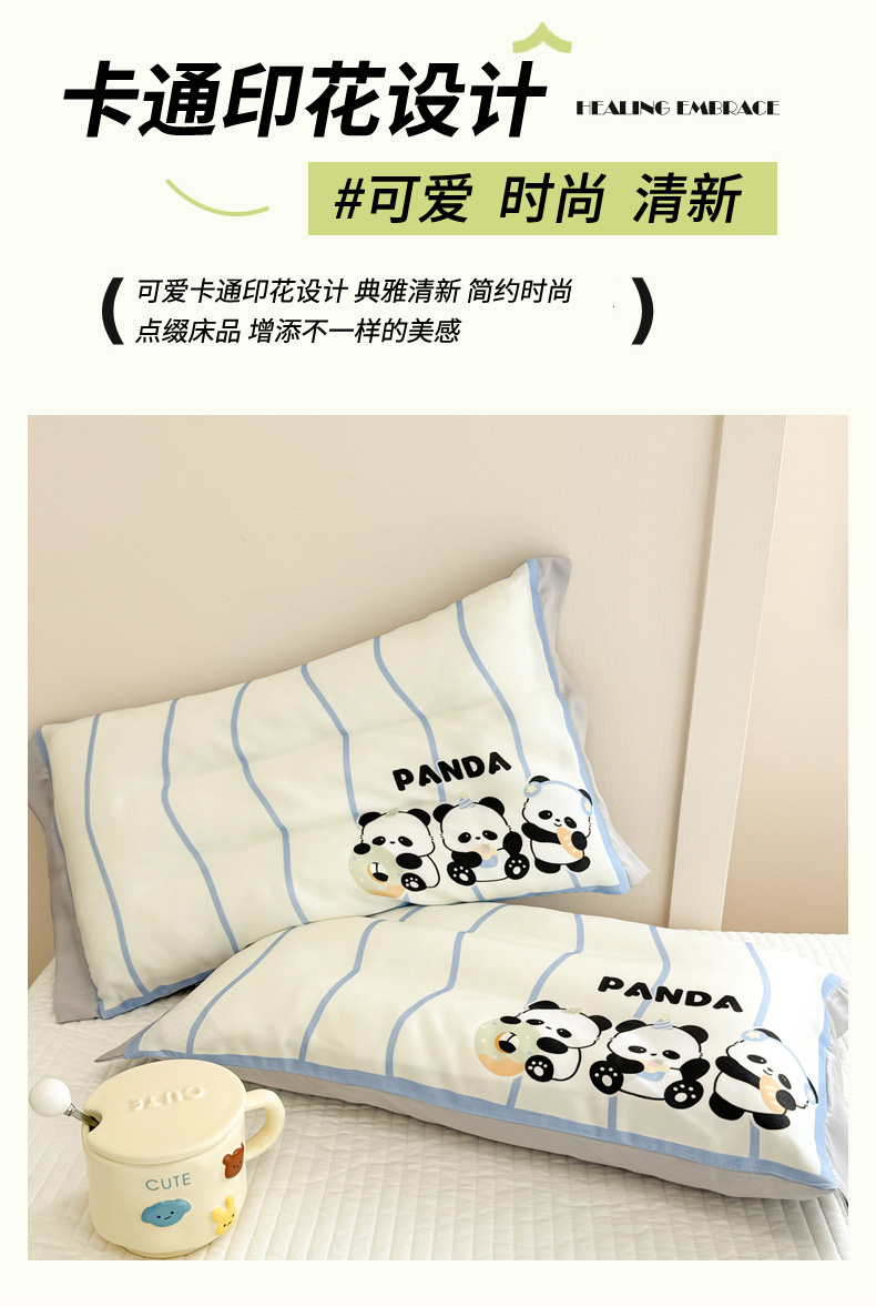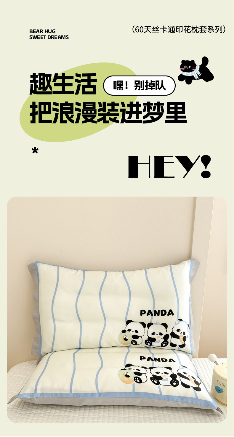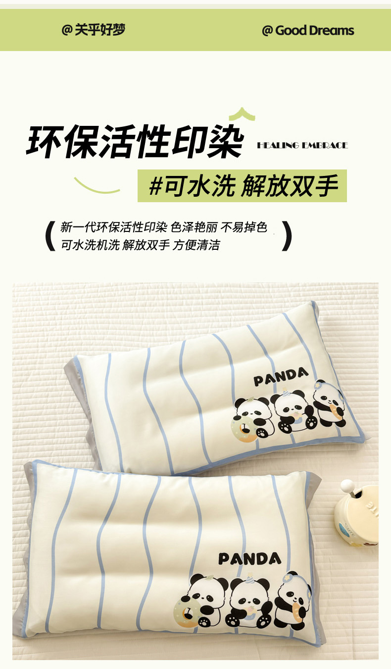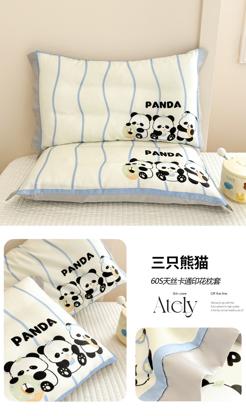 慕尚2025儿童大版天丝枕套 3只熊猫