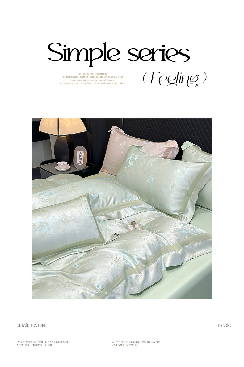 (总)乔利卡沃 2026春夏新品高端A类贡缎提花长绒棉纯棉四件套100全棉提花被套床单床笠高级感床上用品-慕笙,慕笙-蒂奥银,慕笙-浅松绿,慕笙-柔雾蓝,慕笙-疏影金,慕笙-香蜜粉