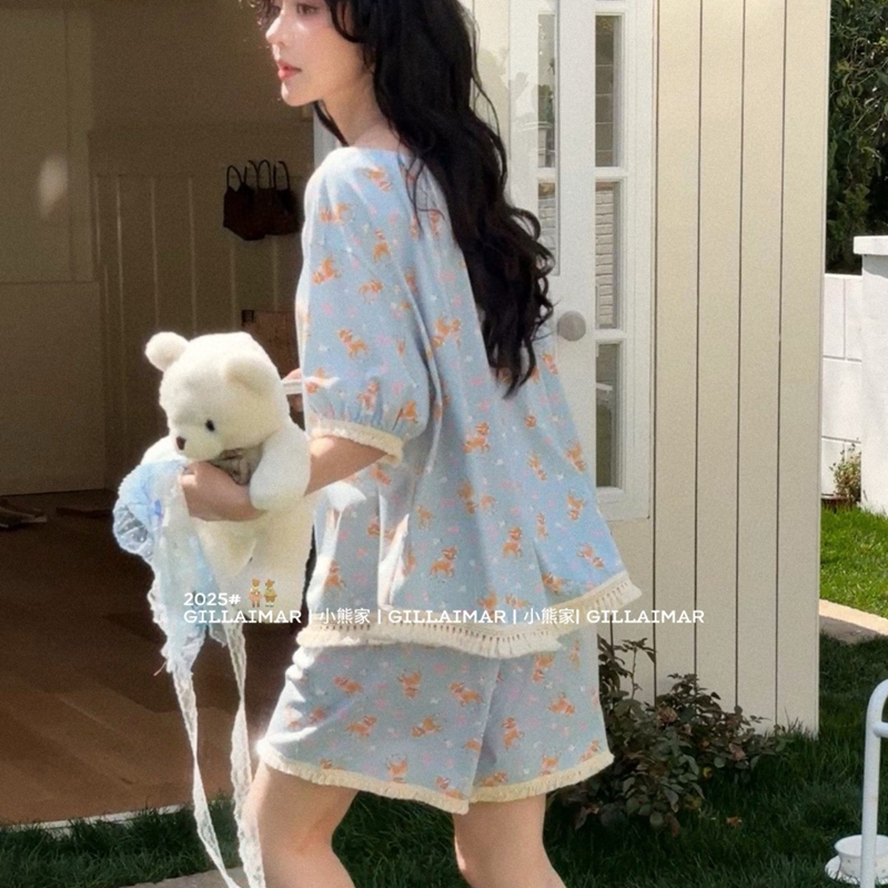 妍景家居生活馆 2025新款小熊家-短裤家居服 小鹿 小鹿-蓝色
