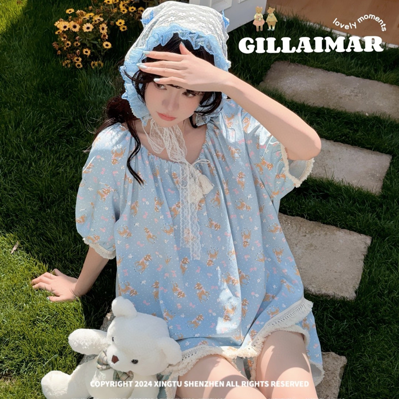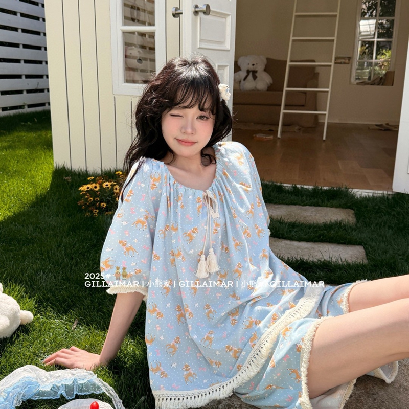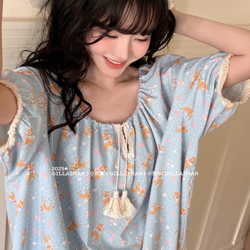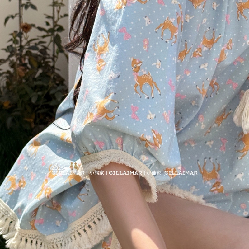 商品名称:妍景家居生活馆 2025新款小熊家-短裤家居服 小鹿 小鹿-蓝色