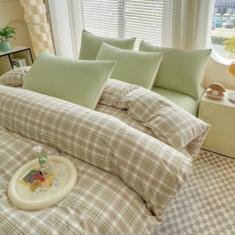 • 91家纺网 家纺一手货源 找家纺 梦精灵家纺 2025新款全棉色织水洗棉四件套纯棉床盖被套罩枕套学生三件套宿舍单人床-床盖款 幻影绿