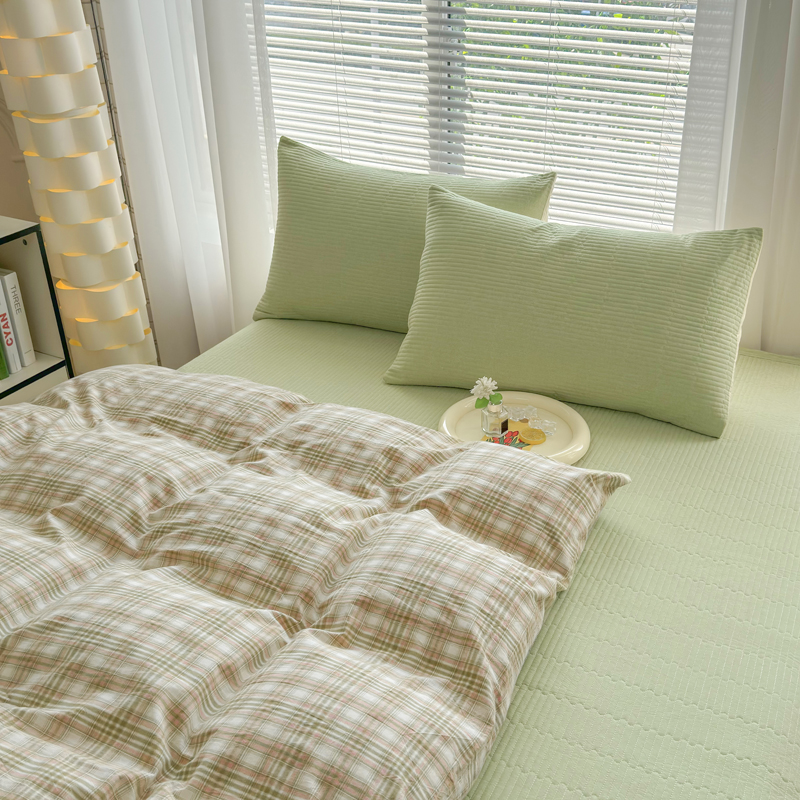 梦精灵家纺 2025新款全棉色织水洗棉四件套纯棉床盖被套罩枕套学生三件套宿舍单人床-床盖款 幻影绿