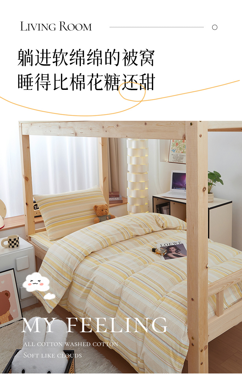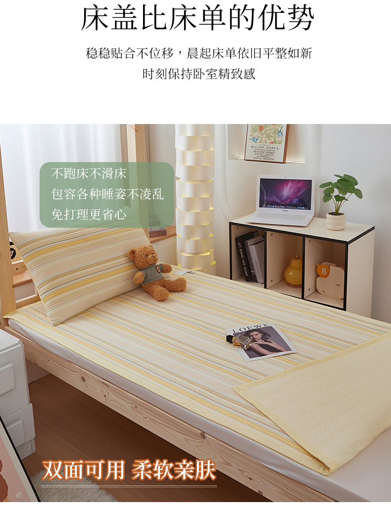 • 91家纺网 家纺一手货源 找家纺 梦精灵家纺 2025新款全棉色织水洗棉四件套纯棉床盖被套罩枕套学生三件套宿舍单人床-床盖款 西蒙黄