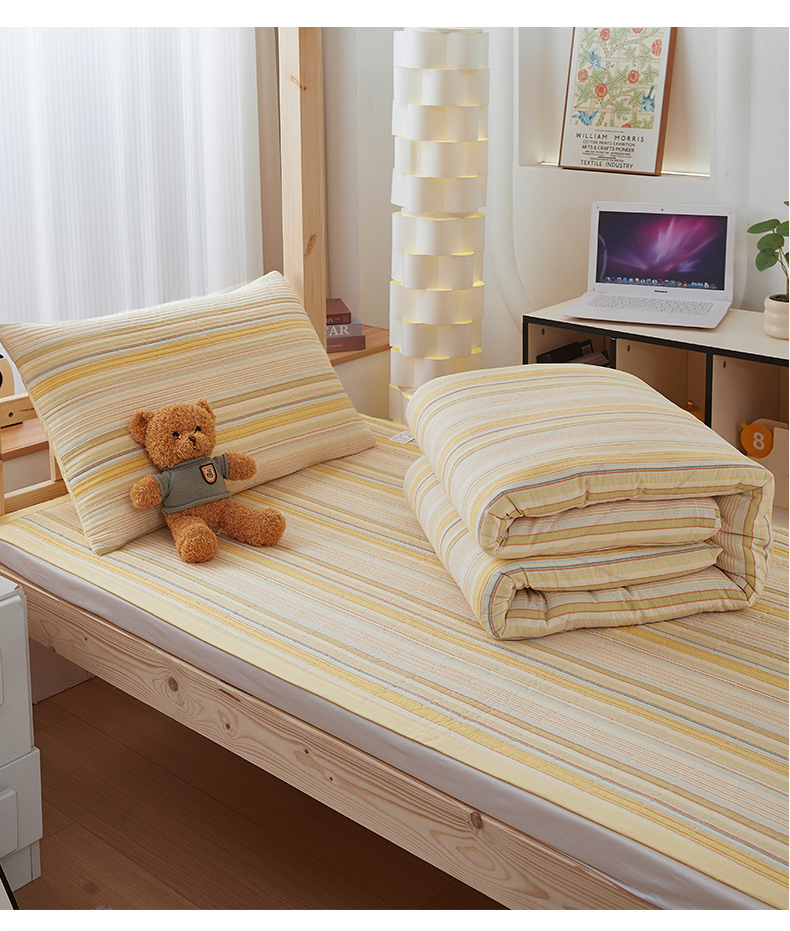 梦精灵家纺 2025新款全棉色织水洗棉四件套纯棉床盖被套罩枕套学生三件套宿舍单人床-床盖款 西蒙黄