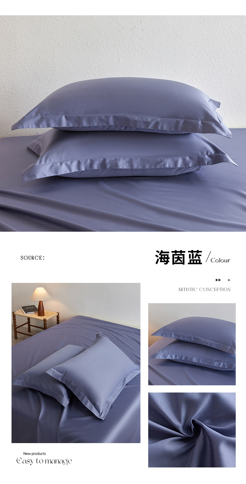 (总)轩和家居 2025新款70S砂洗长绒棉枕套,芦暖,松烟,烟凝,云水,组合