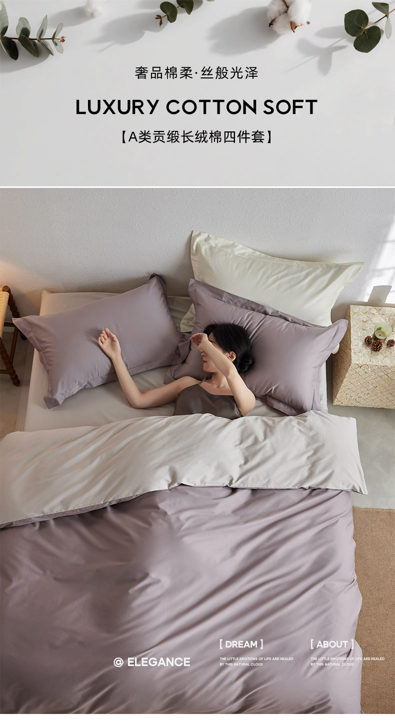 当前位置: 91家纺网 > 商品网购 > 床品套件 > 四件套 > 长绒棉四件套 > 轩和家居 2025新款50S贡缎长绒棉纯棉四件套 海茵蓝+雅士灰