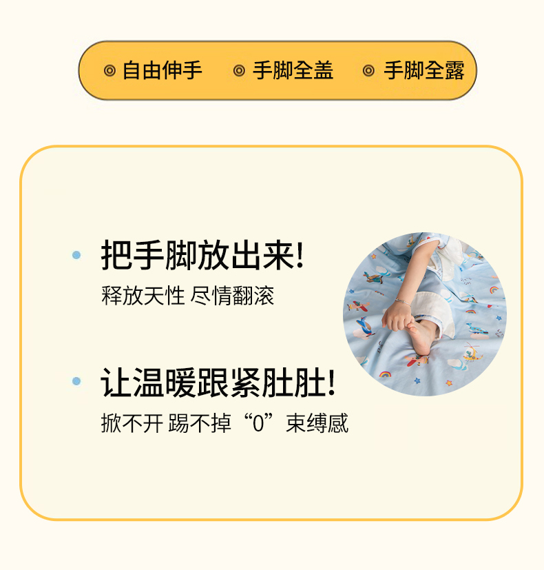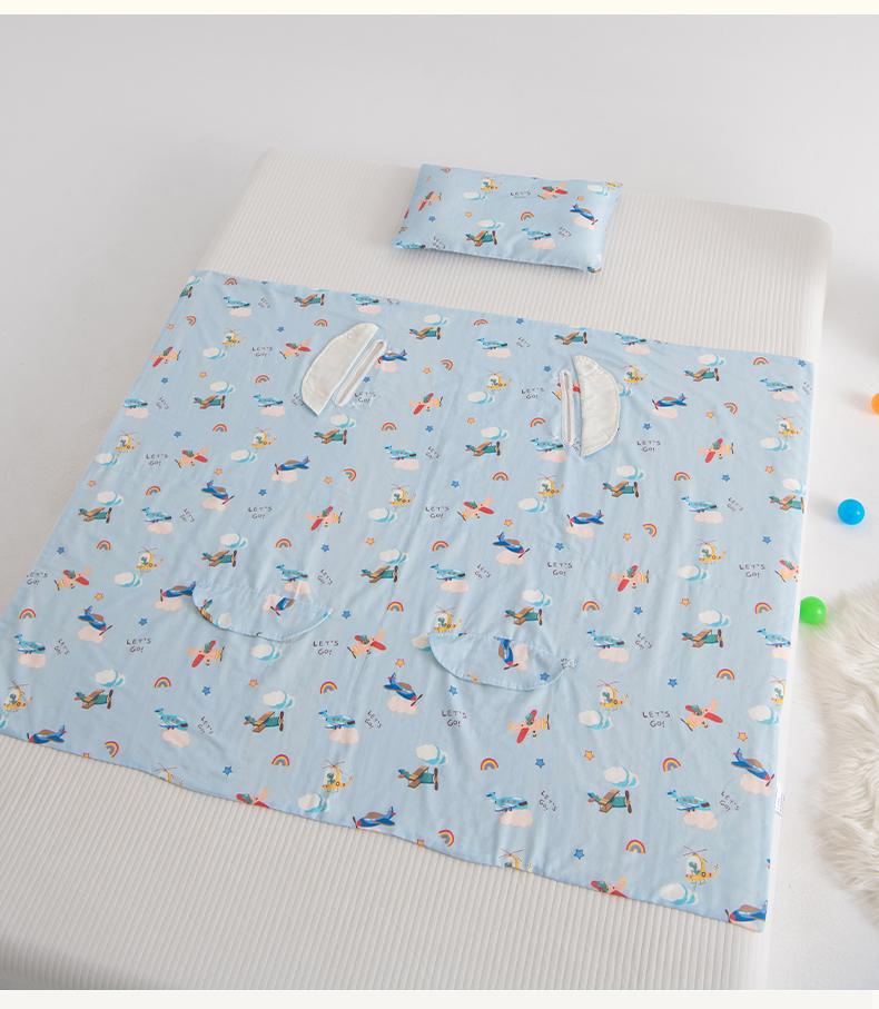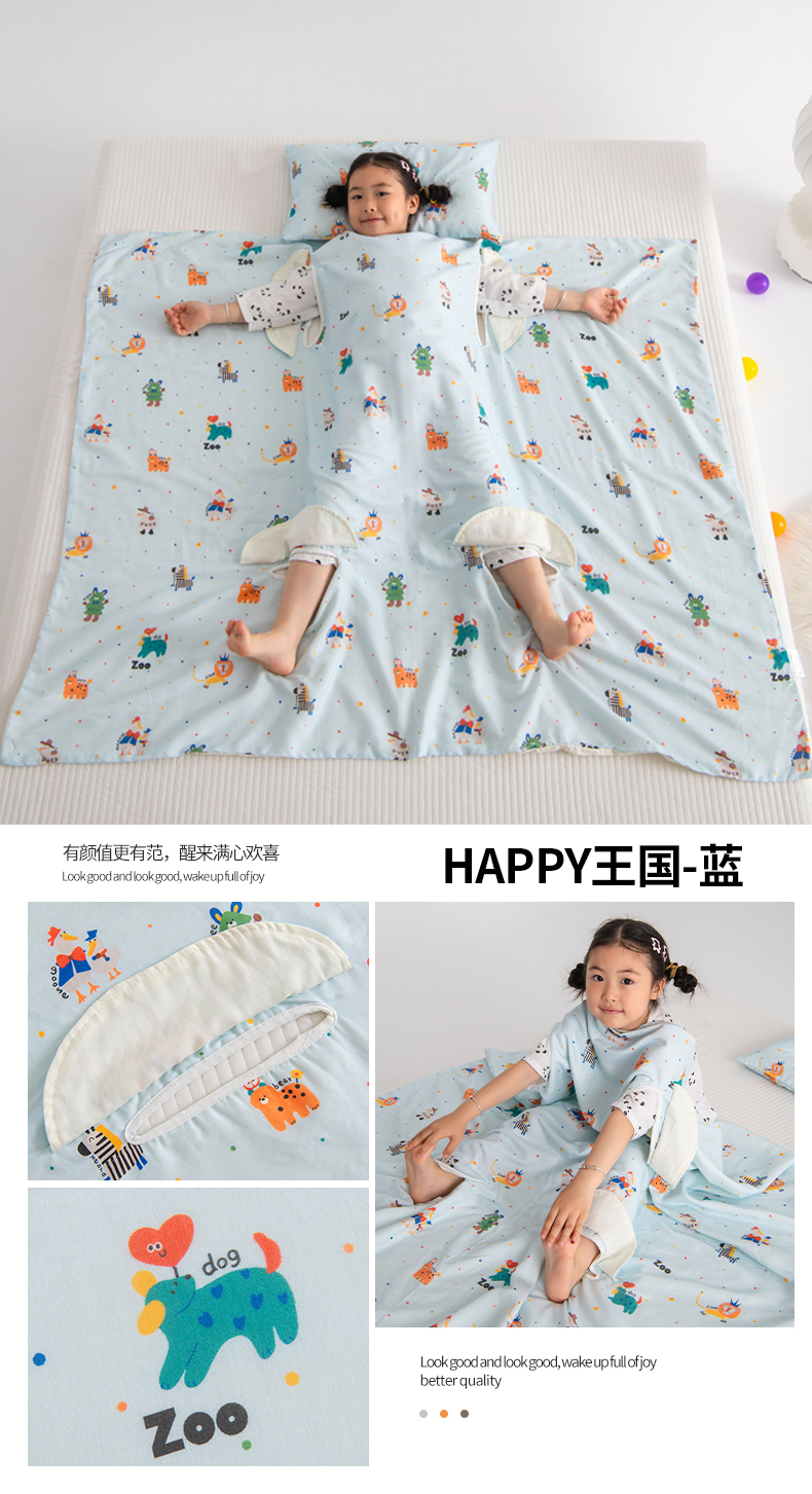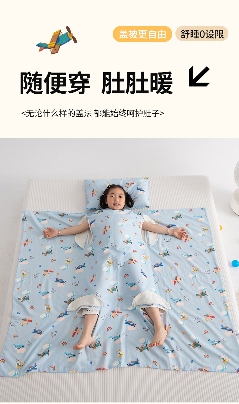 当前位置: 91家纺网 > 商品网购 > 婴童用品 > 婴童睡袋/防踢被 > 嗨皮宝贝 2025新款A类全棉纱布睡袋婴儿薄款夏季宝宝儿童春秋防踢被神器四季通用护肚 飞行派对-蓝