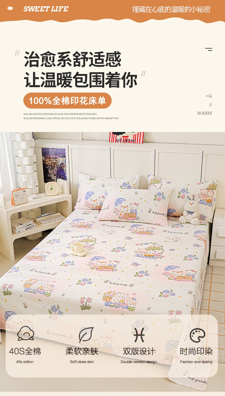 商品名称:金鑫汇家纺 2025新款13070全棉好卖花型套件系列-单床单(花型更好卖,面料更厚实,退货率低) 喵喵日记