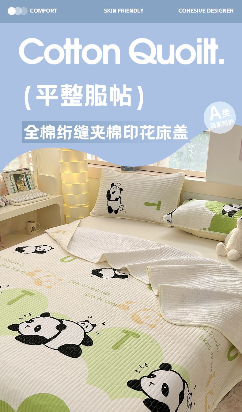 • 91家纺网 家纺一手货源 找家纺 金鑫汇家纺 2025新款全棉绗缝夹棉印花床盖 快乐萌兔 床盖