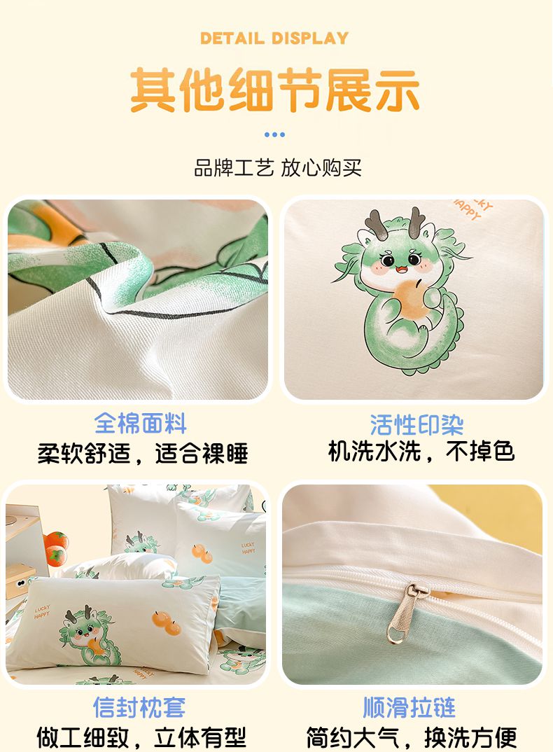 商品名称:金鑫汇家纺 2025新款13070全棉好卖花型套件系列-单被套 小青龙