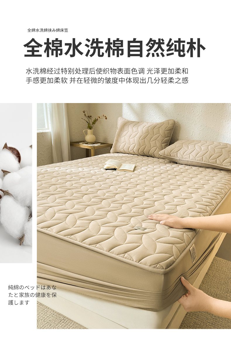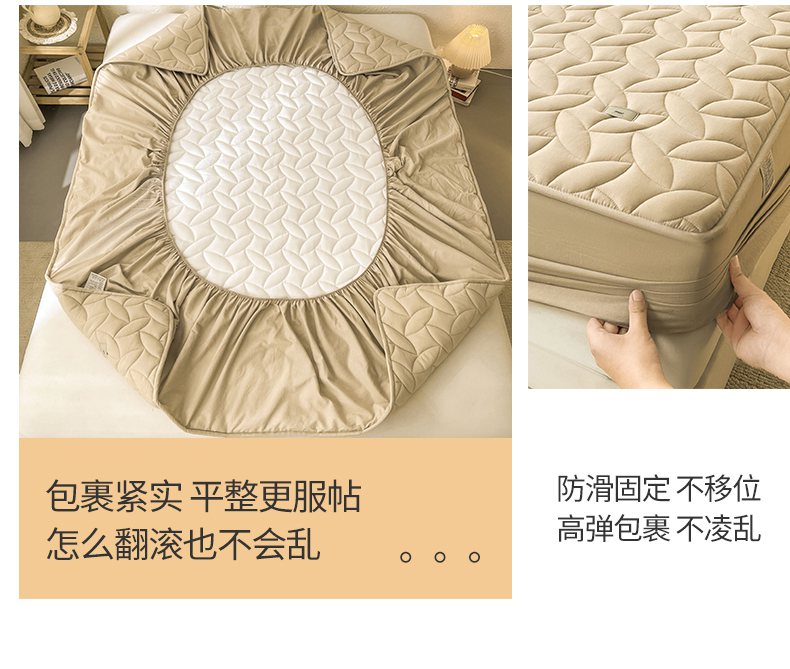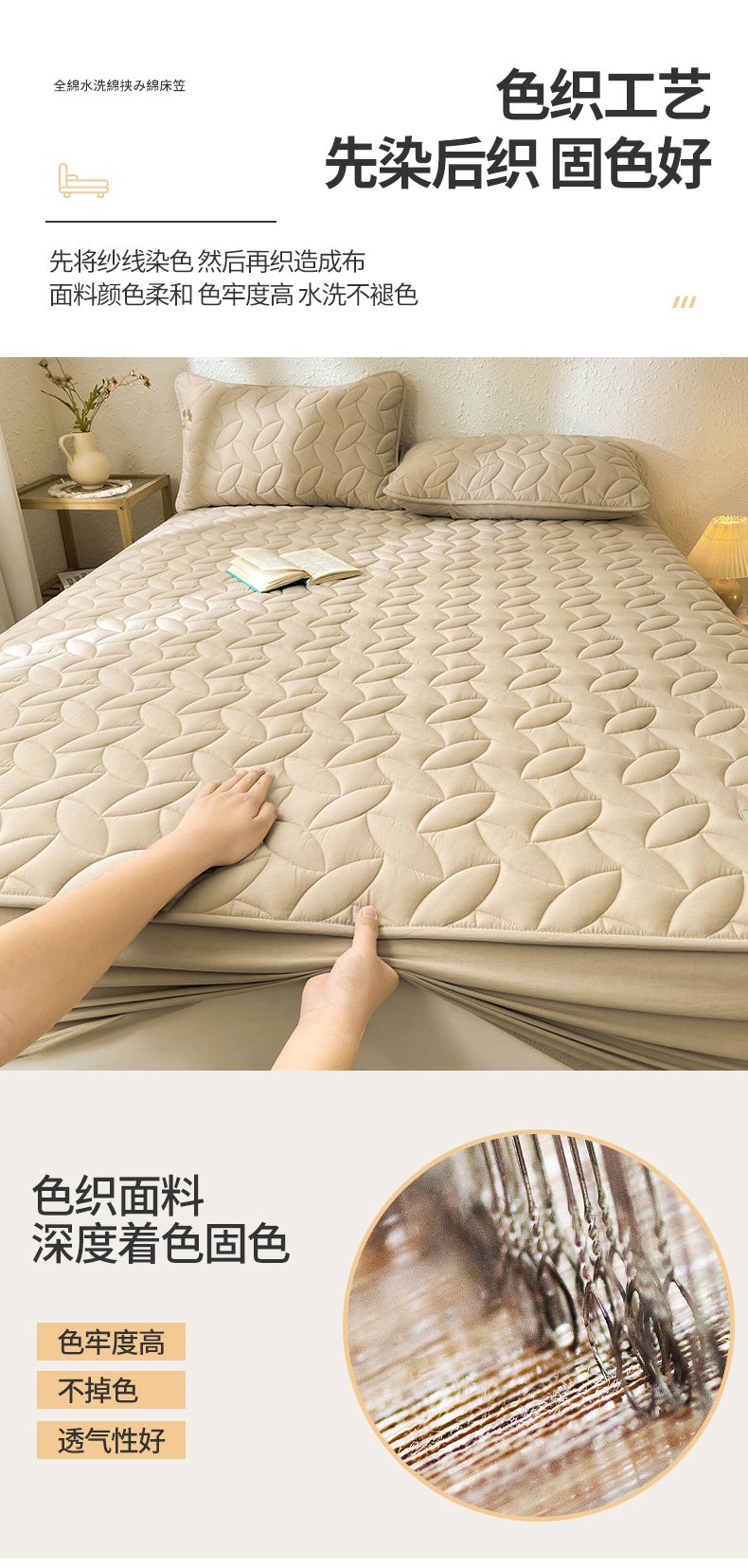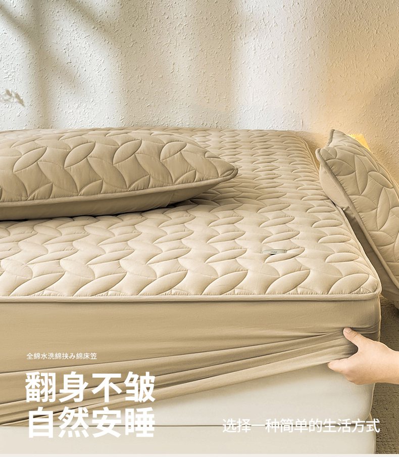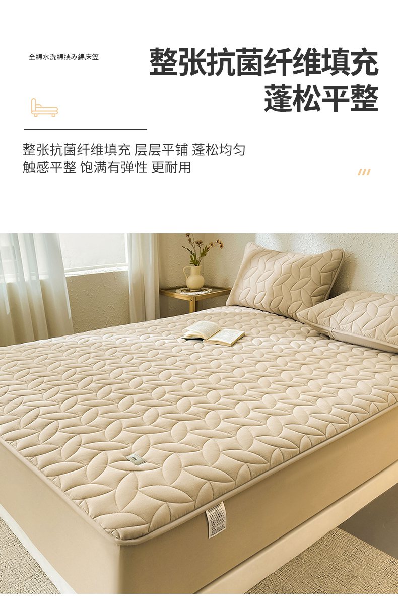 • 91家纺网 家纺一手货源 找家纺 3C 2025新款全棉水洗棉夹棉床笠-叶弦 叶弦-浅咖