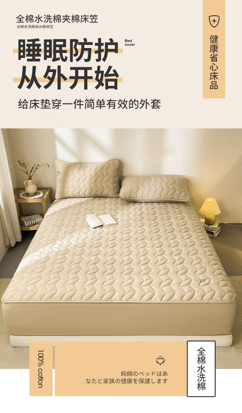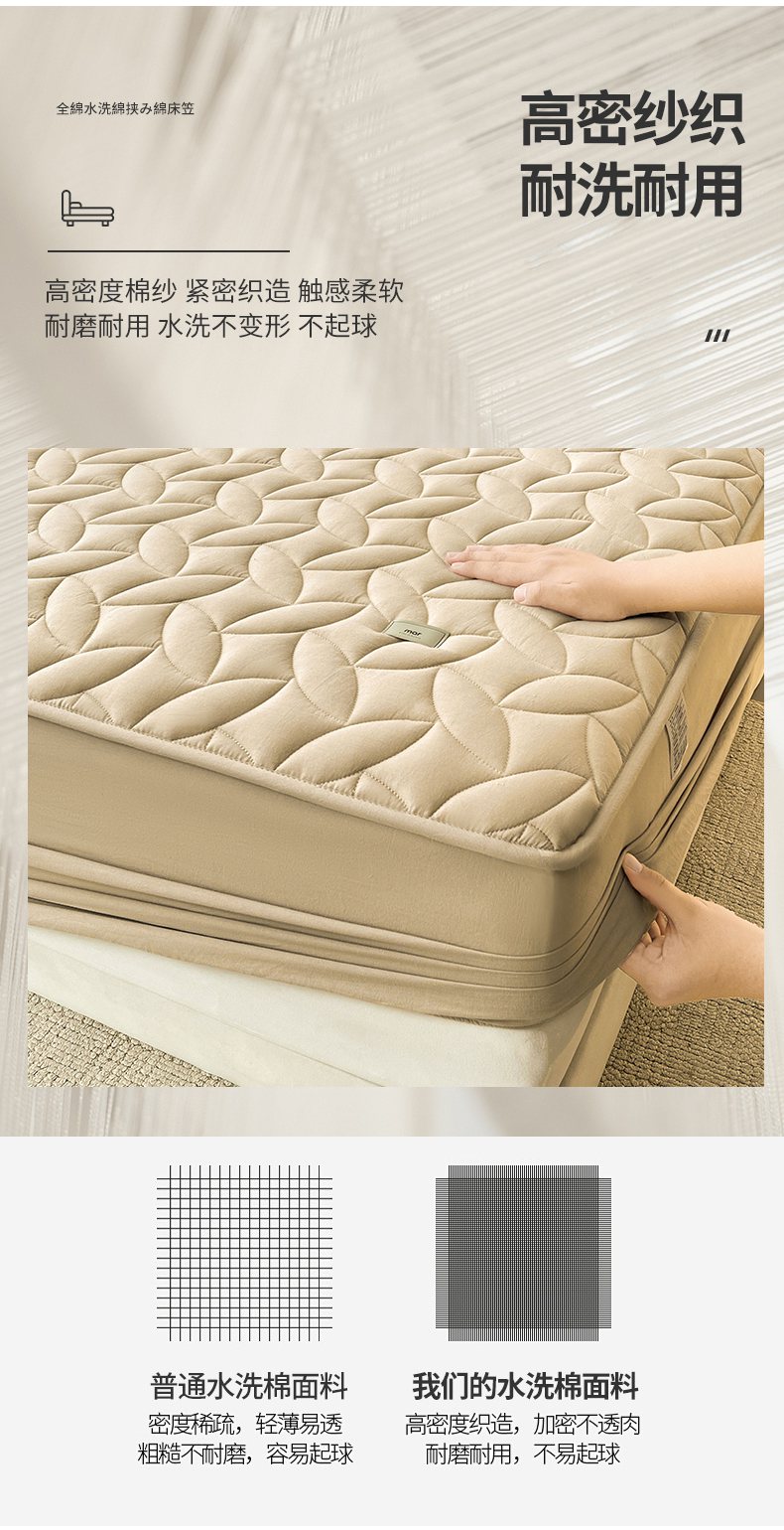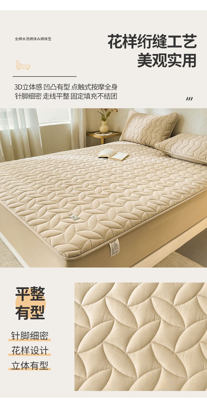 • 91家纺网 家纺一手货源 找家纺 3C 2025新款全棉水洗棉夹棉床笠-叶弦 叶弦-浅咖