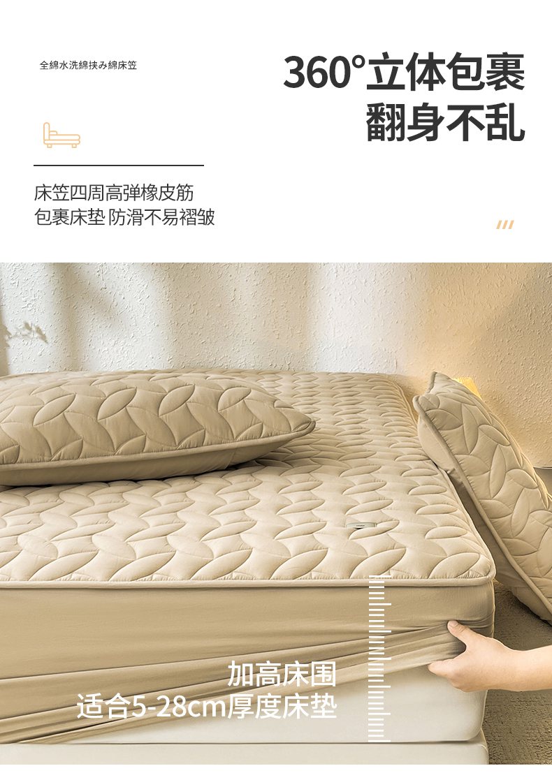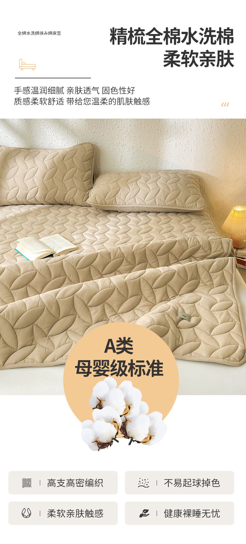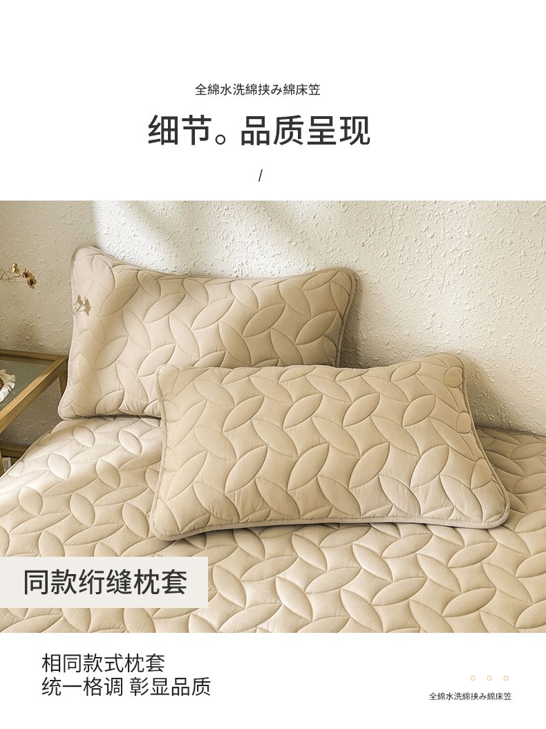3C 2025新款全棉水洗棉夹棉床笠-叶弦 叶弦-浅咖