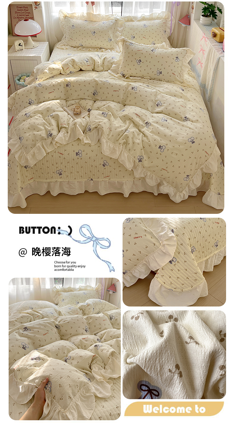 商品名称:美梦家纺2025新款皱皱纱花边被套床盖四件套 晚樱落海
