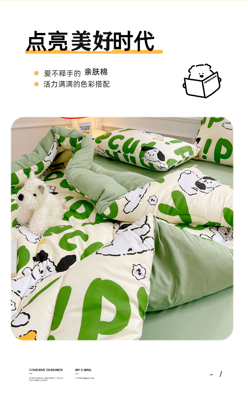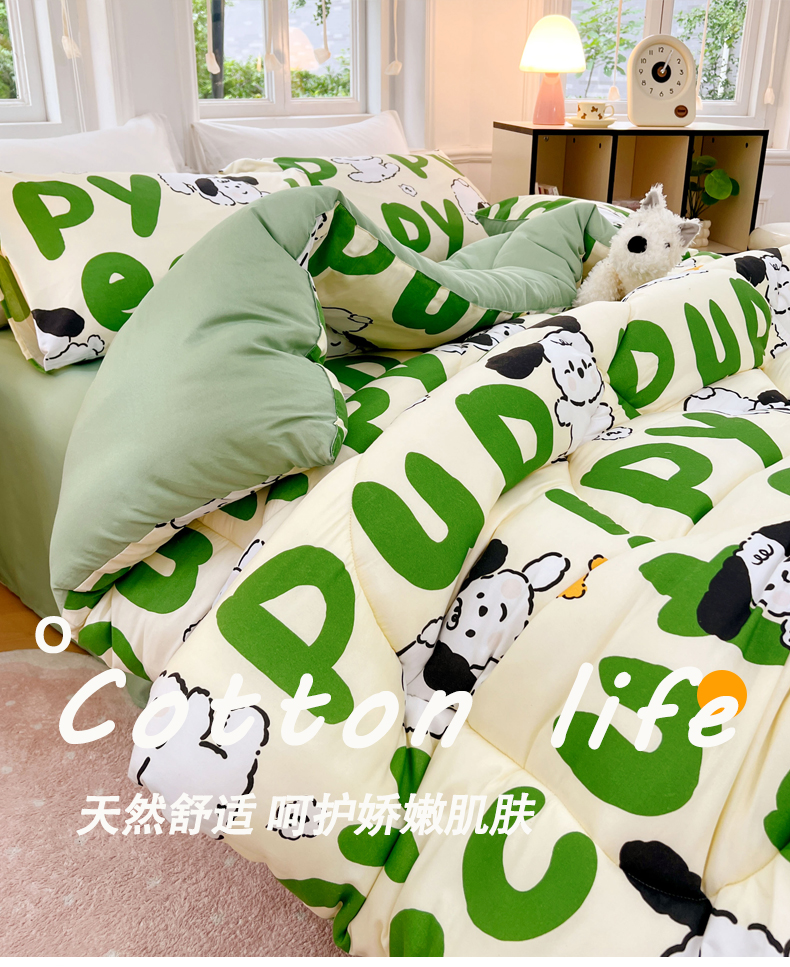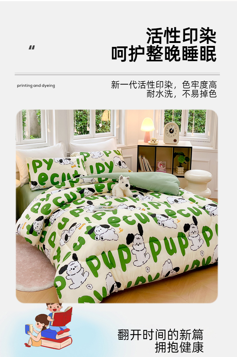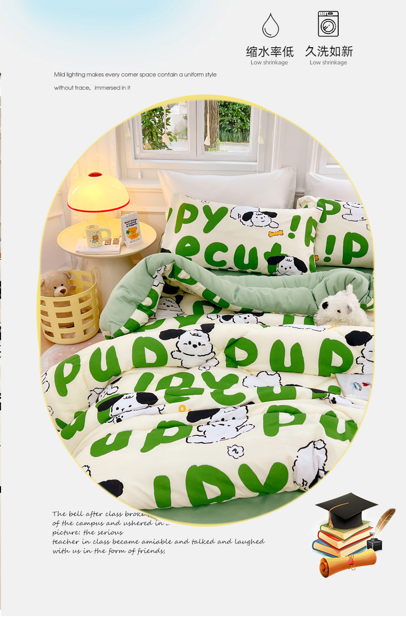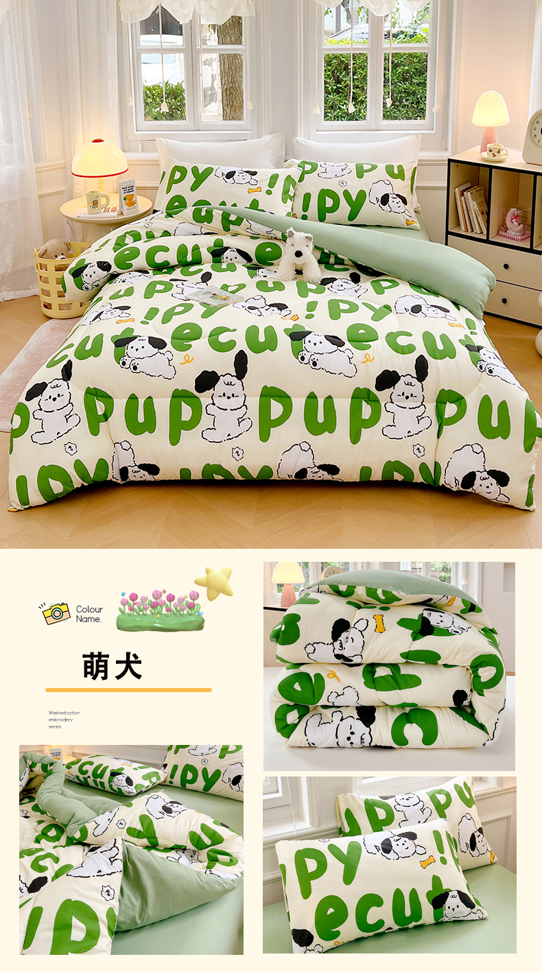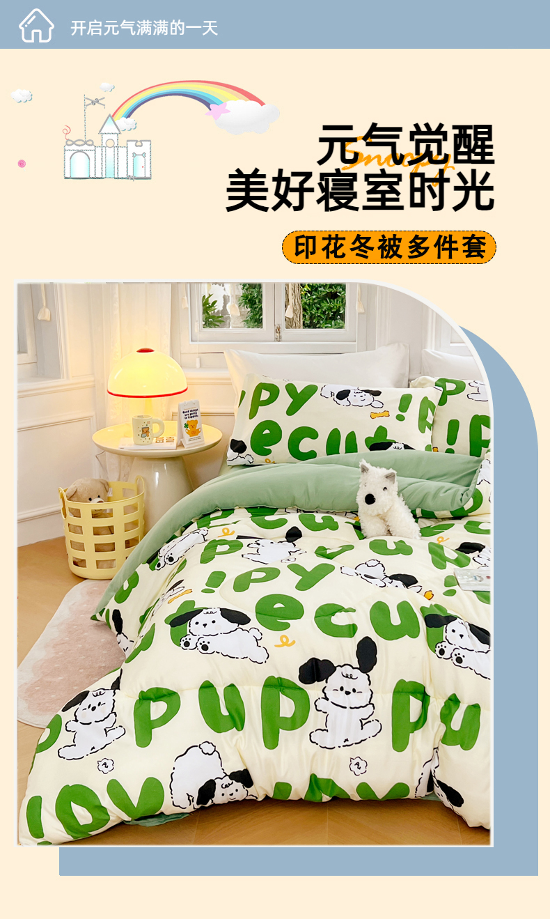 • 91家纺网 家纺一手货源 找家纺 VIP被业 2025新款冬被学生宿舍印花冬被上下铺多套件 萌犬