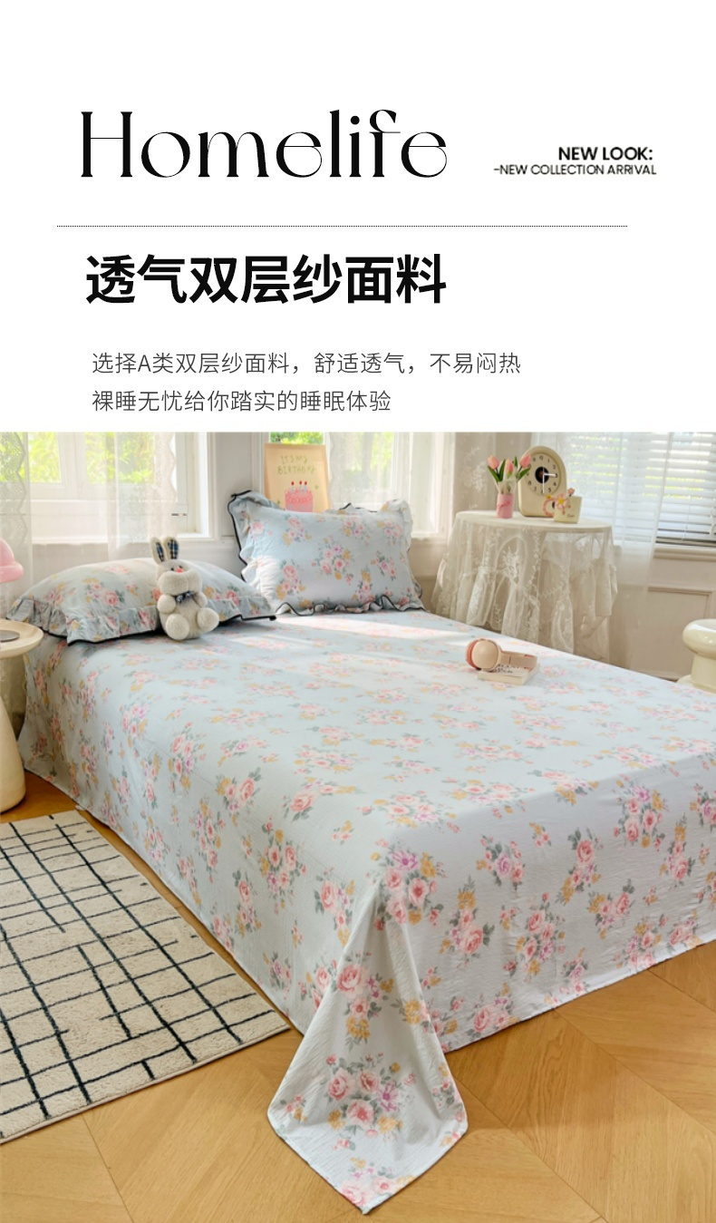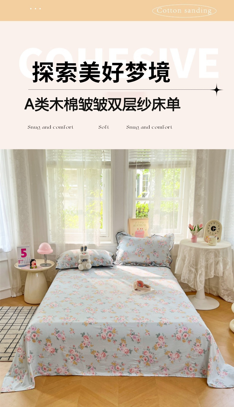 • 91家纺网 家纺一手货源 找家纺 梦舒羽 2025新款皱皱双层纱印花床单繁花入梦-印花床单