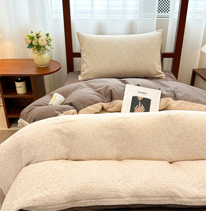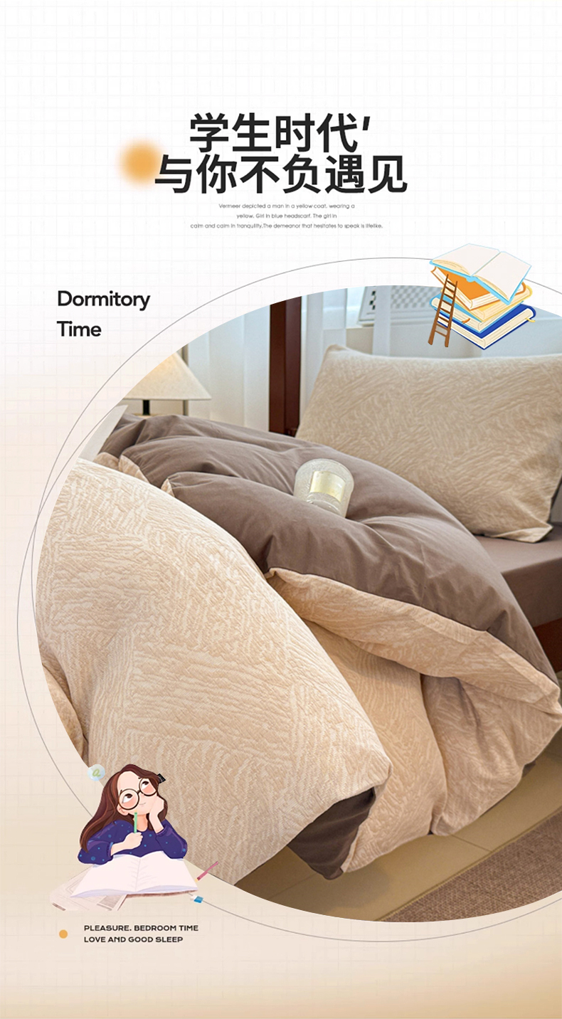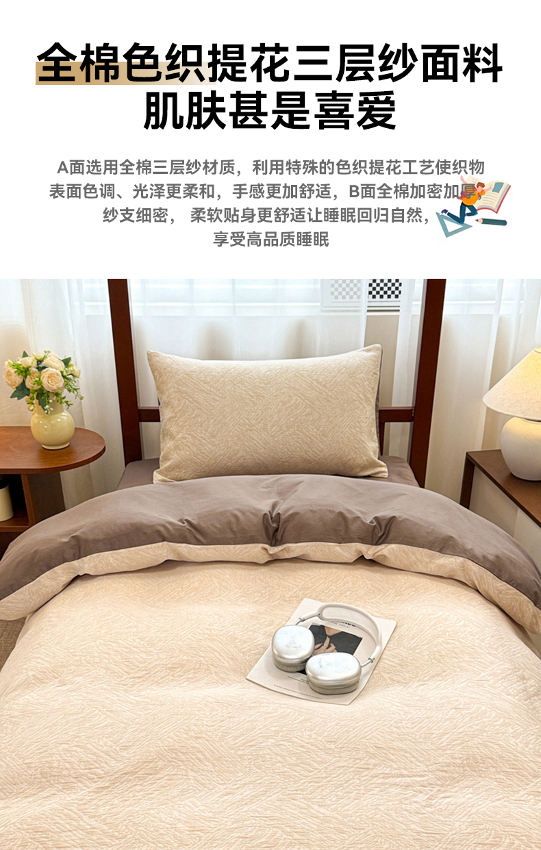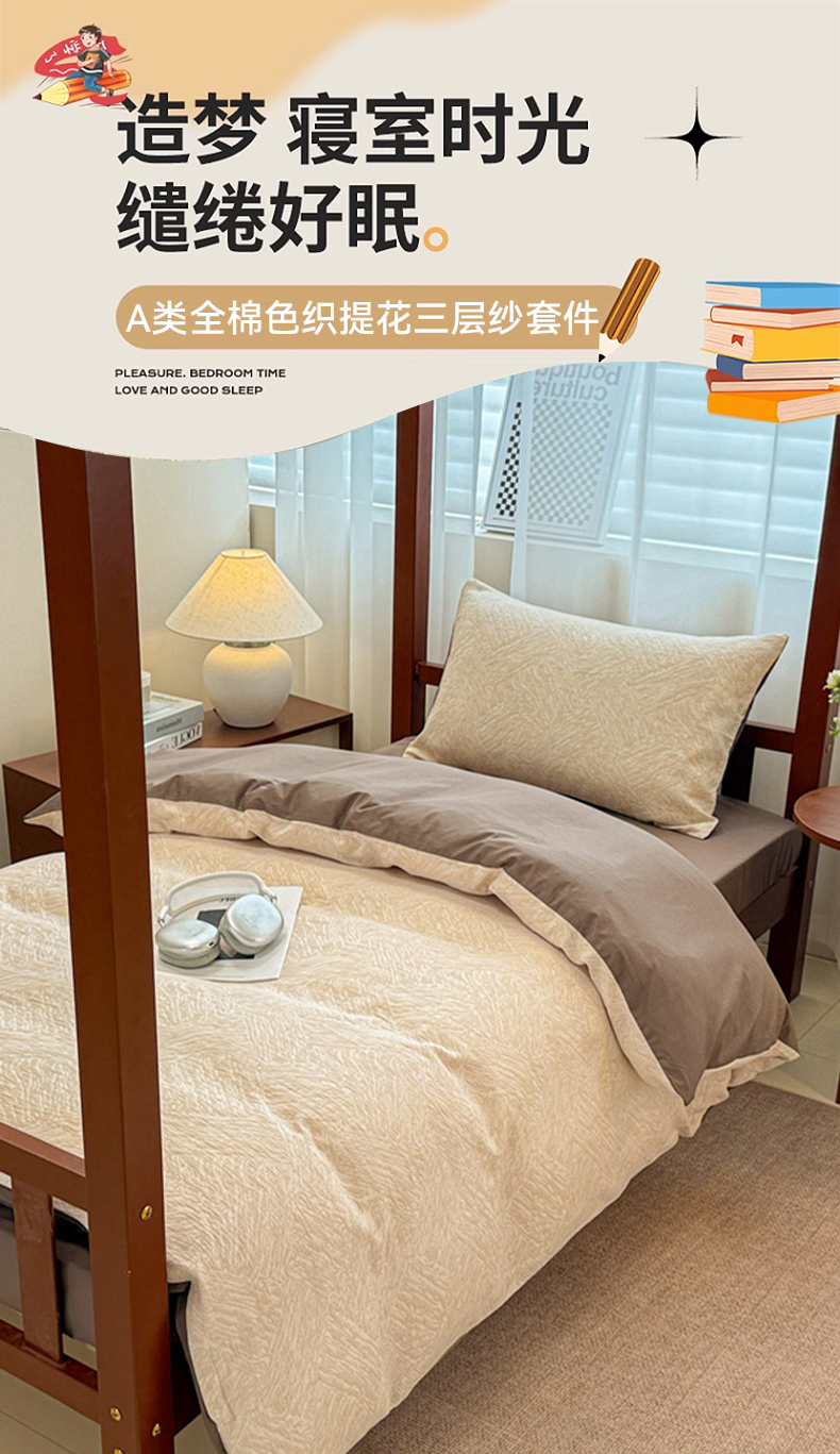 当前位置: 91家纺网 > 商品网购 > 床品套件 > 三件套 > 眠博士 2025新款A类全棉纯棉色织提花三层纱三四件套学生三件套宿舍上下铺 三层纱套件-本色 杏