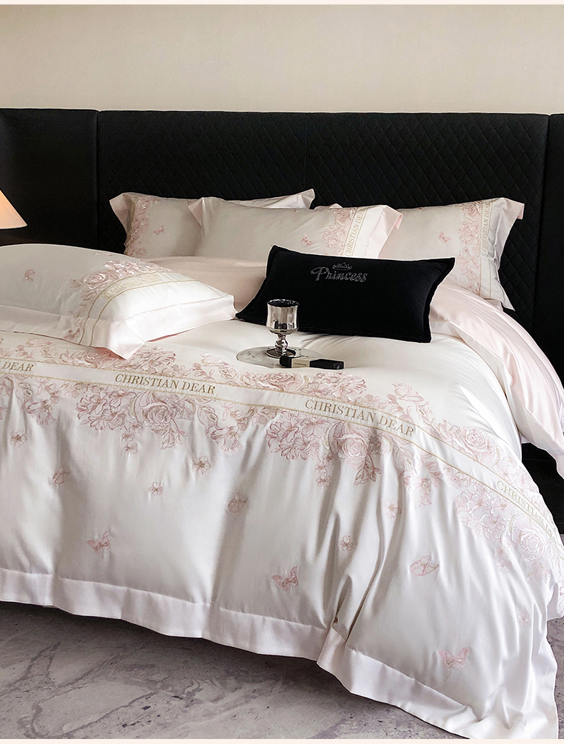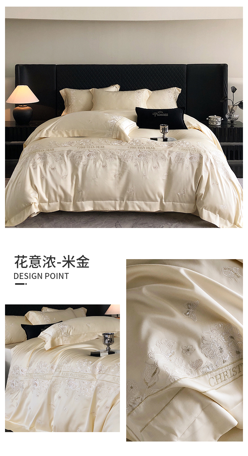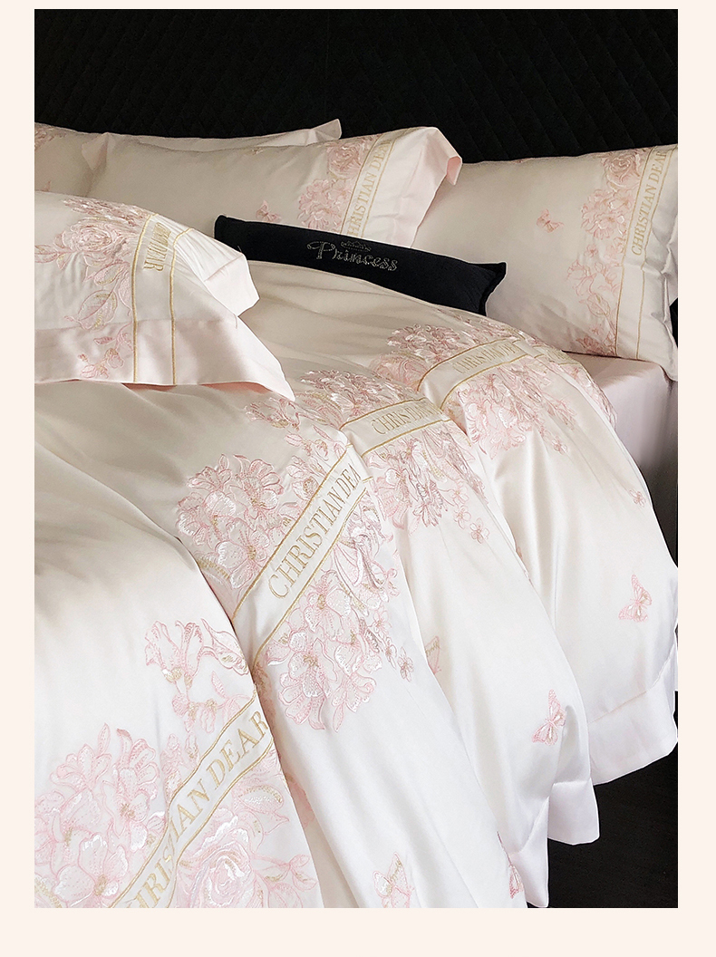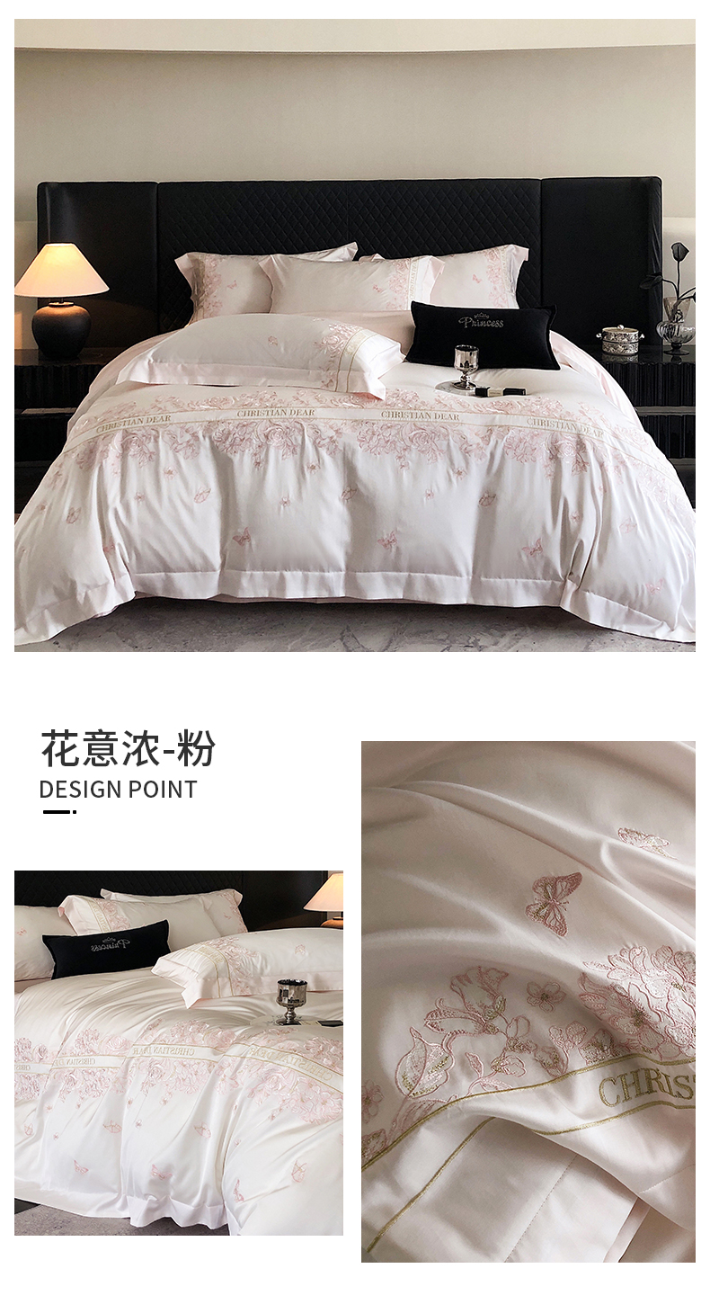 当前位置: 91家纺网 > 商品网购 > 床品套件 > 四件套 > 长绒棉四件套 > (总)鼎飞家纺 2025春夏新款长绒棉纯棉绣花四件套-花意浓