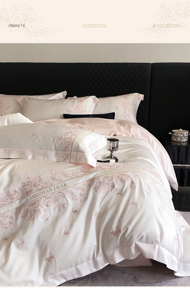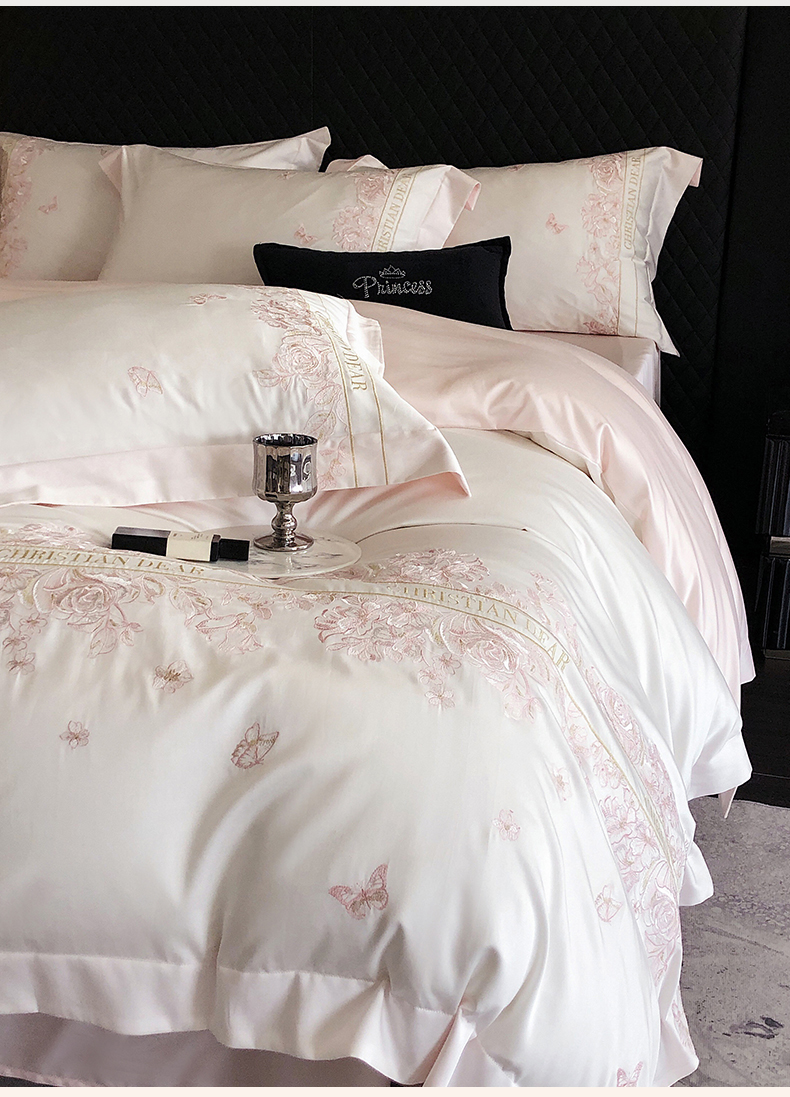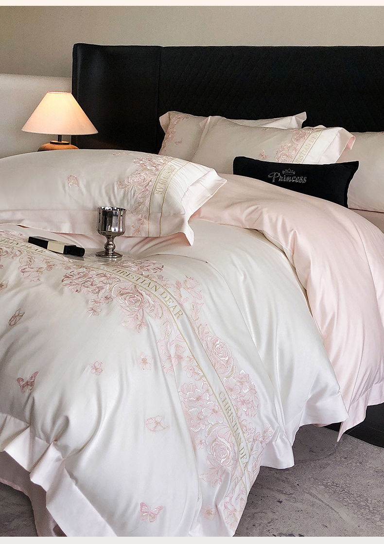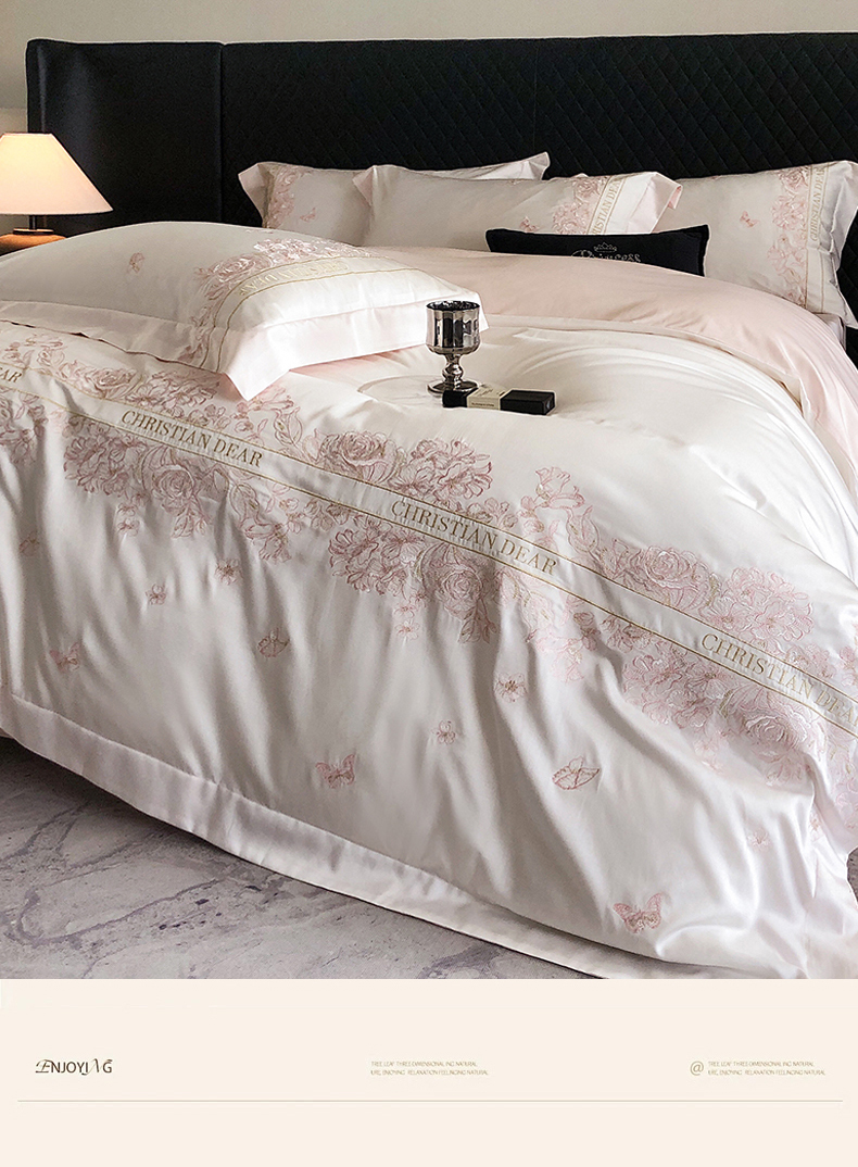 当前位置: 91家纺网 > 商品网购 > 床品套件 > 四件套 > 长绒棉四件套 > (总)鼎飞家纺 2025春夏新款长绒棉纯棉绣花四件套-花意浓