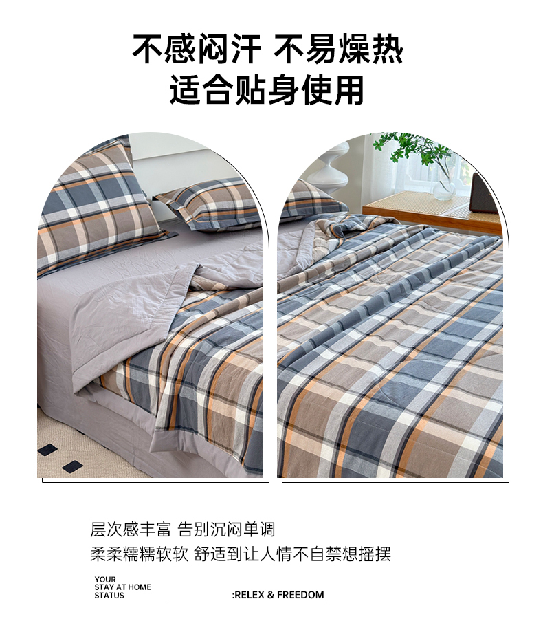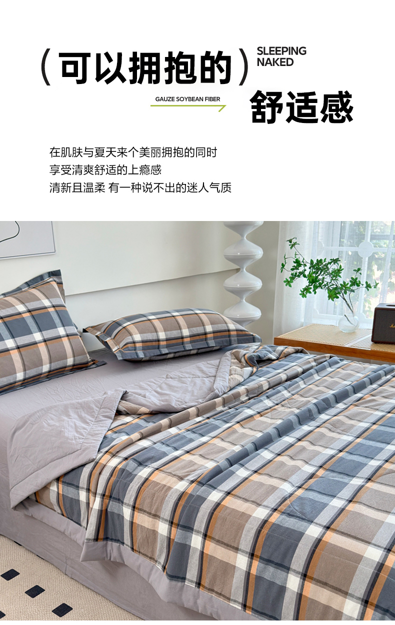 • 91家纺网 家纺一手货源 找家纺 价格下调三沁2025最新A类大豆纤维全棉色织水洗棉夏被四件套夏凉被空调被子无印良品 爵士乐章