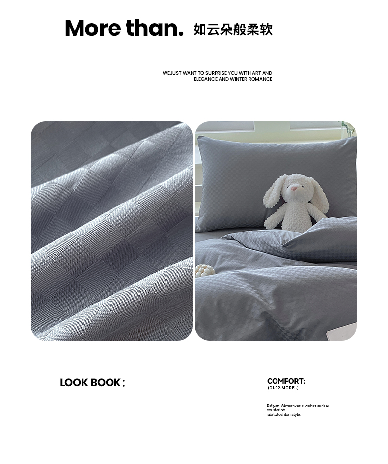 当前位置: 91家纺网 > 商品网购 > 床品套件 > 四件套 > 长绒棉四件套 > 金鑫汇 2025新款纯色提花三件套 深灰