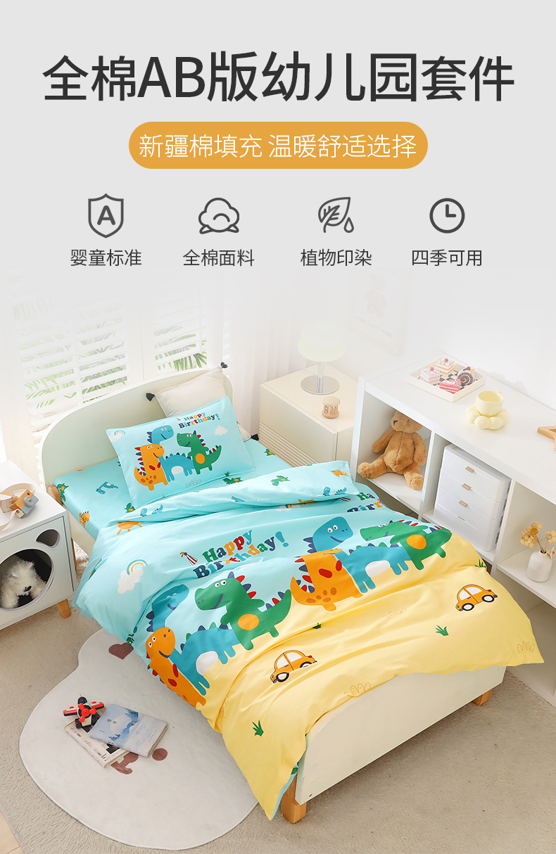 当前位置: 91家纺网 > 商品网购 > 床品套件 > 多件套 > 多件套 > 2025年新款幼儿园全棉被子三件套宝宝入园纯棉六件套被褥午睡被套恐龙世界