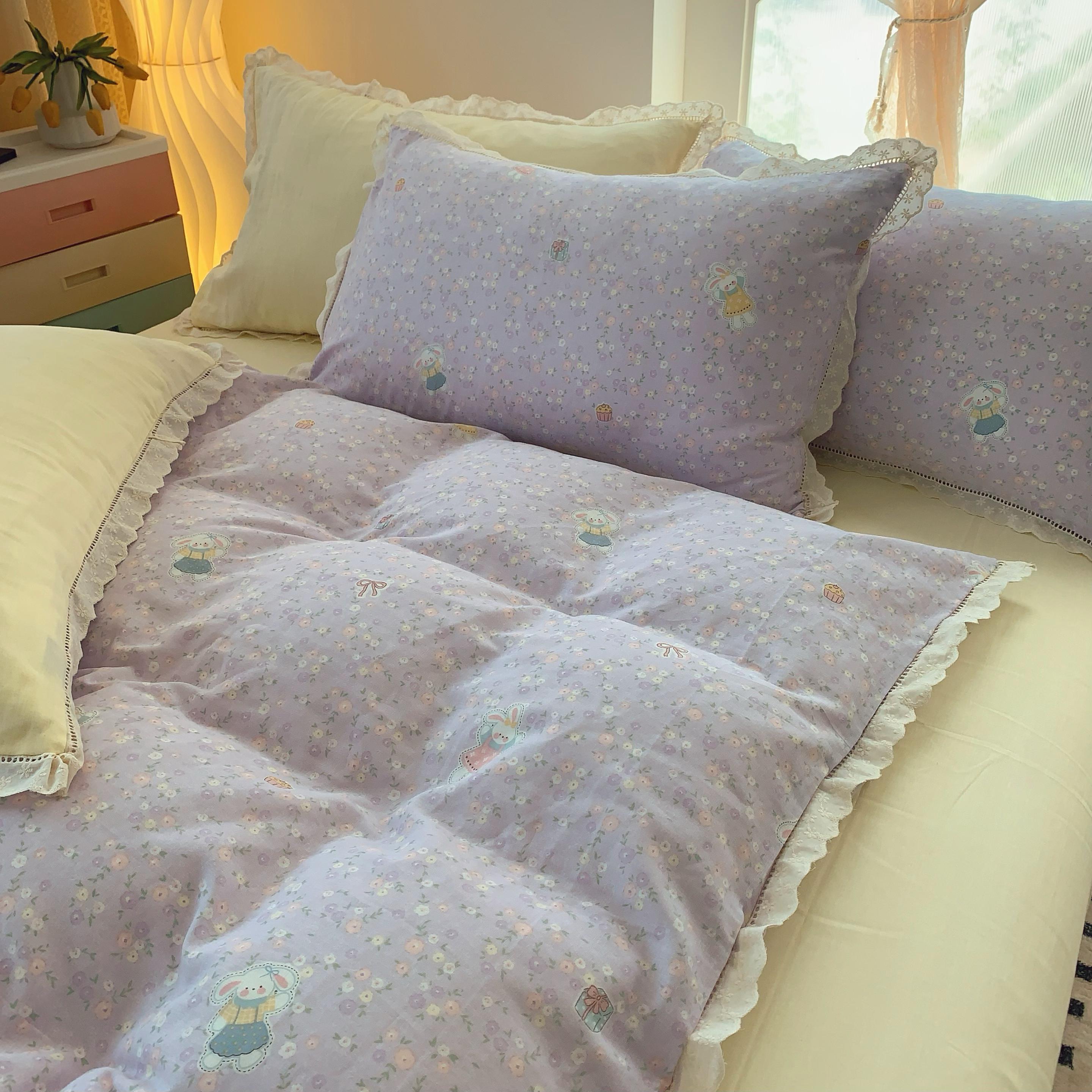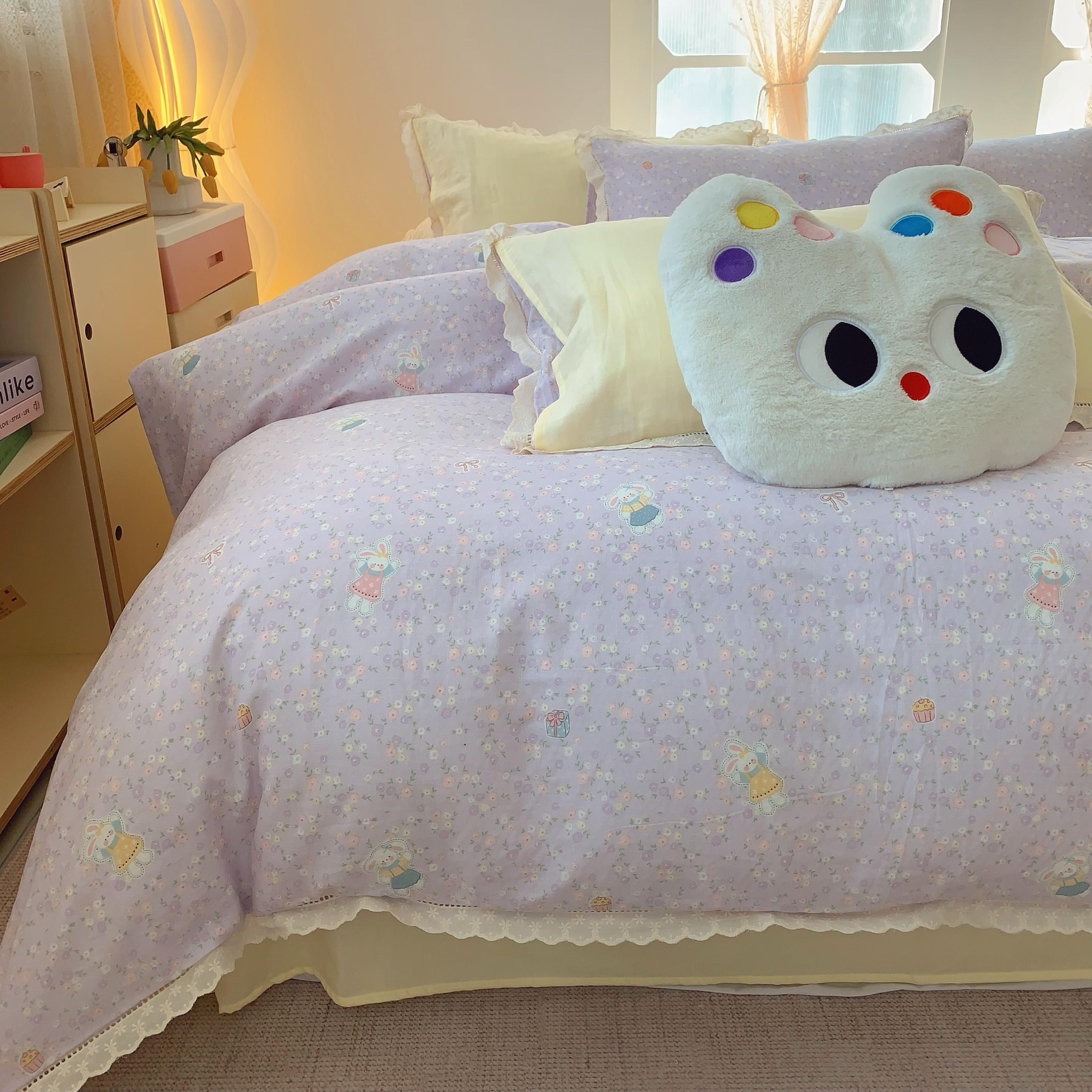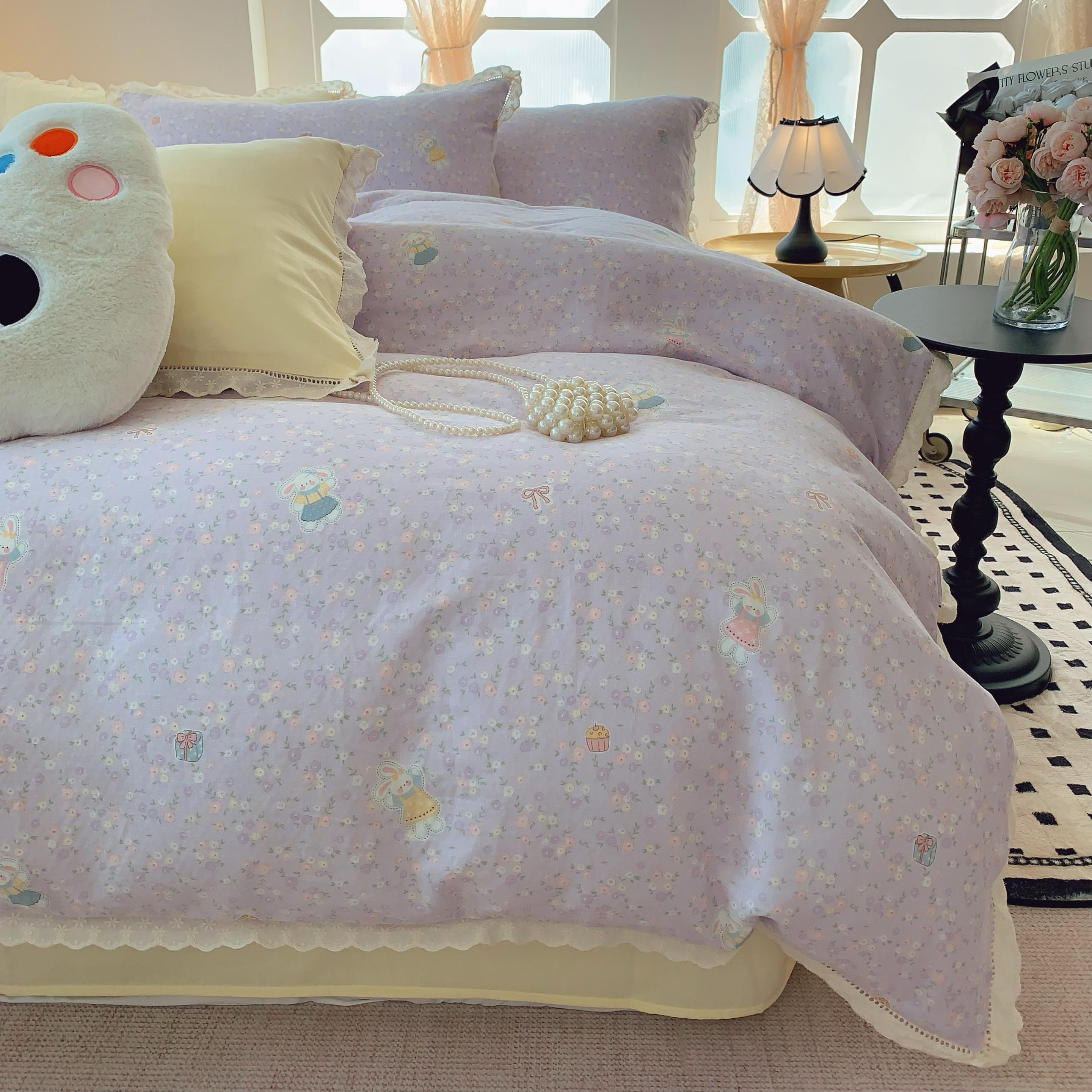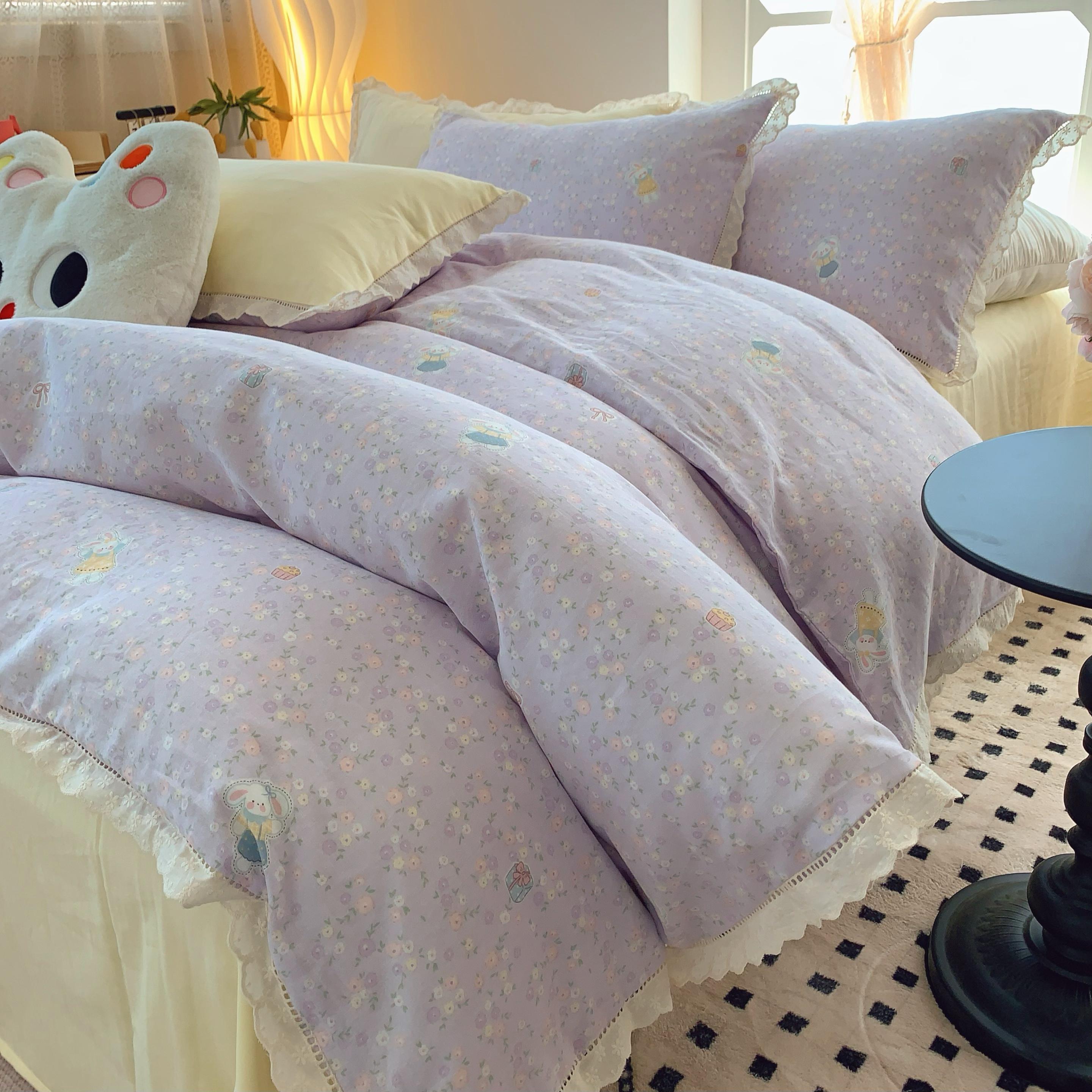 奈萝家纺 2025新款全棉双层纱花边款四件套 可爱兔仔