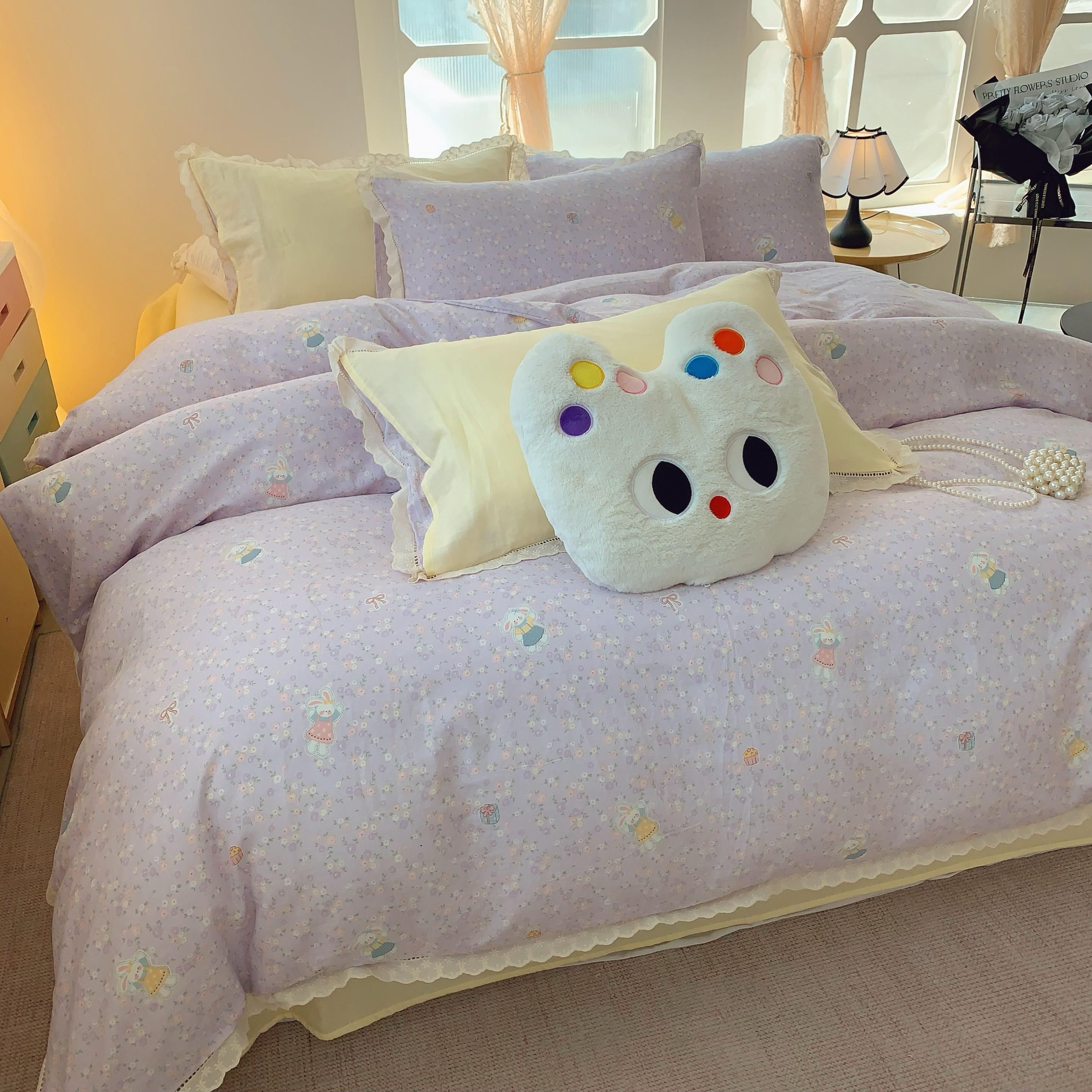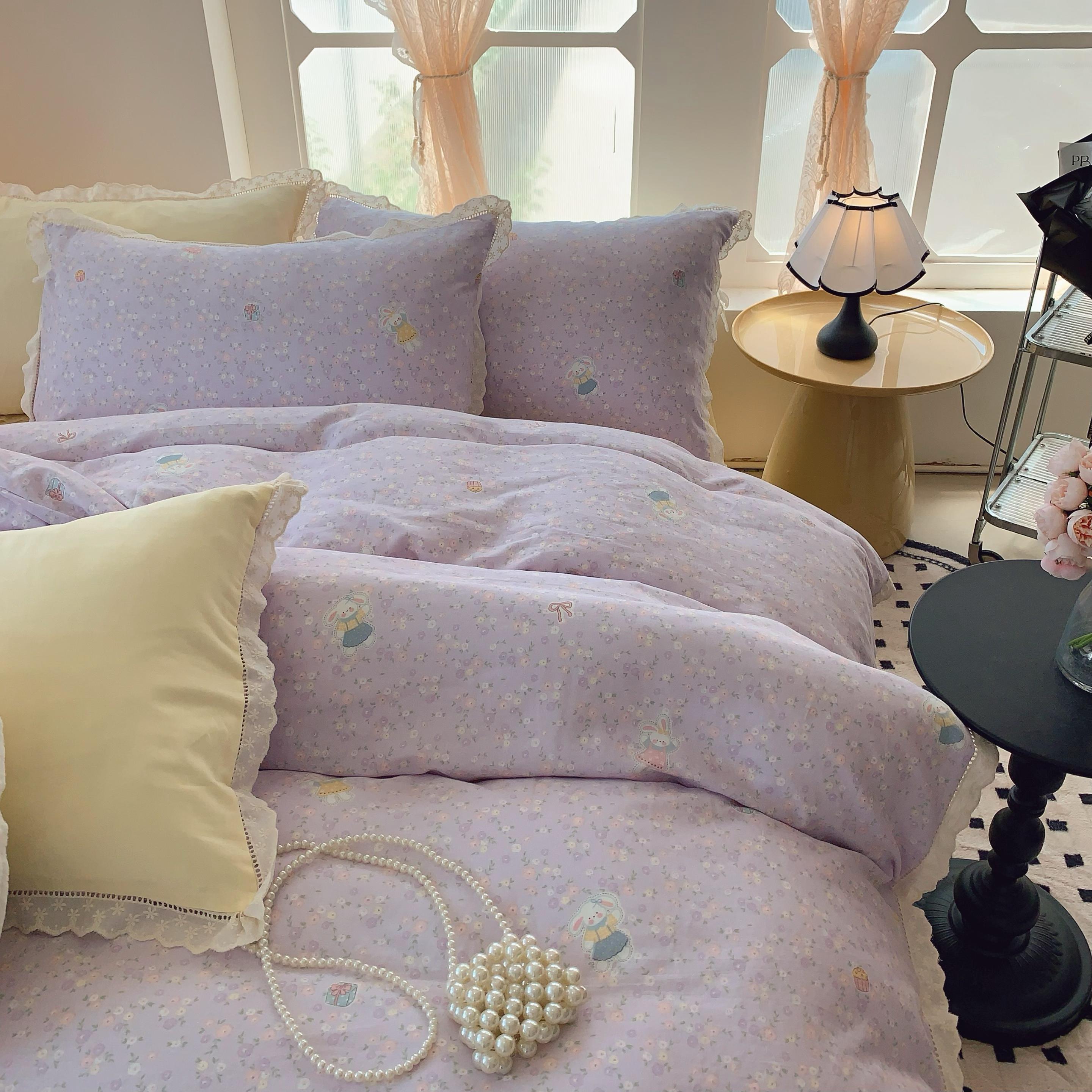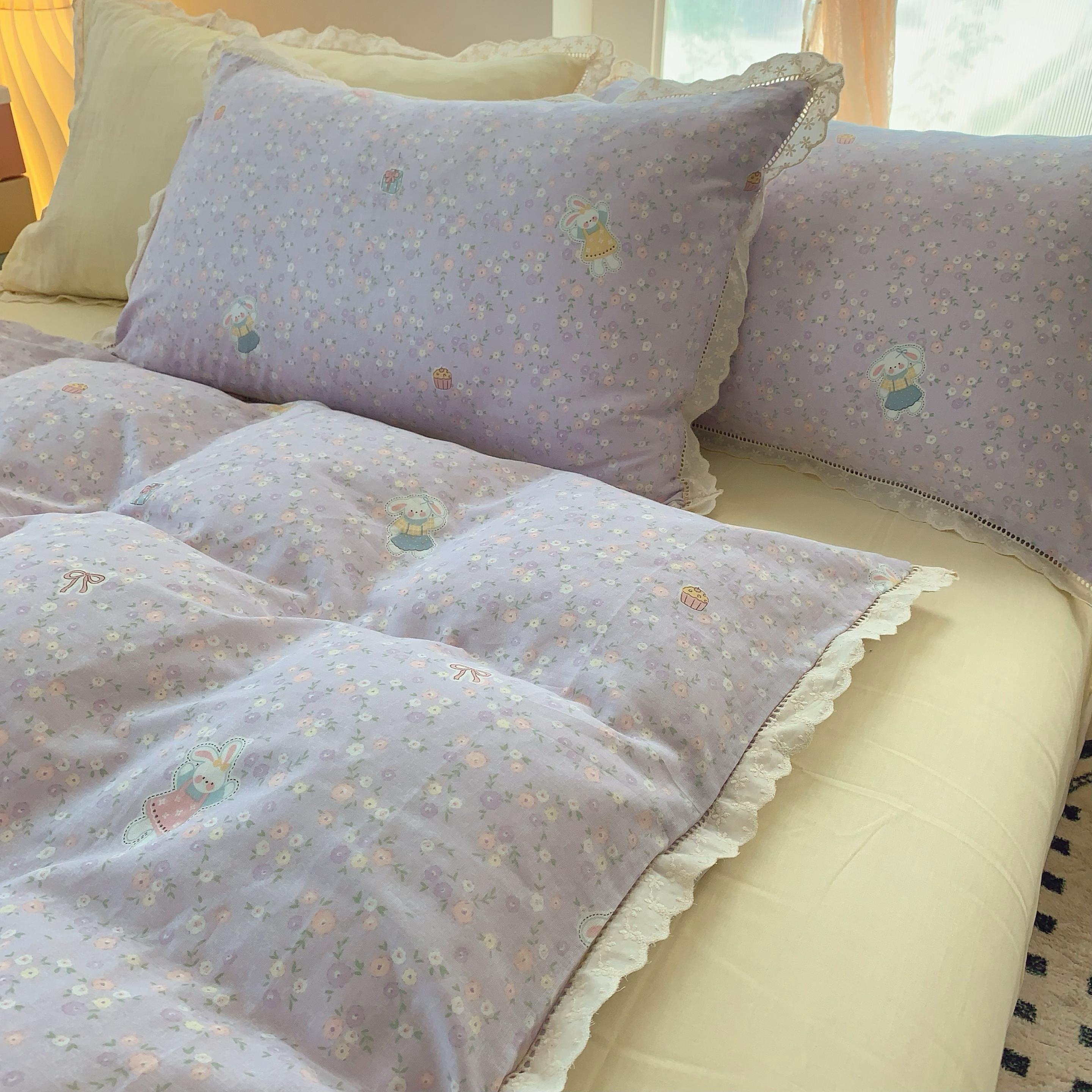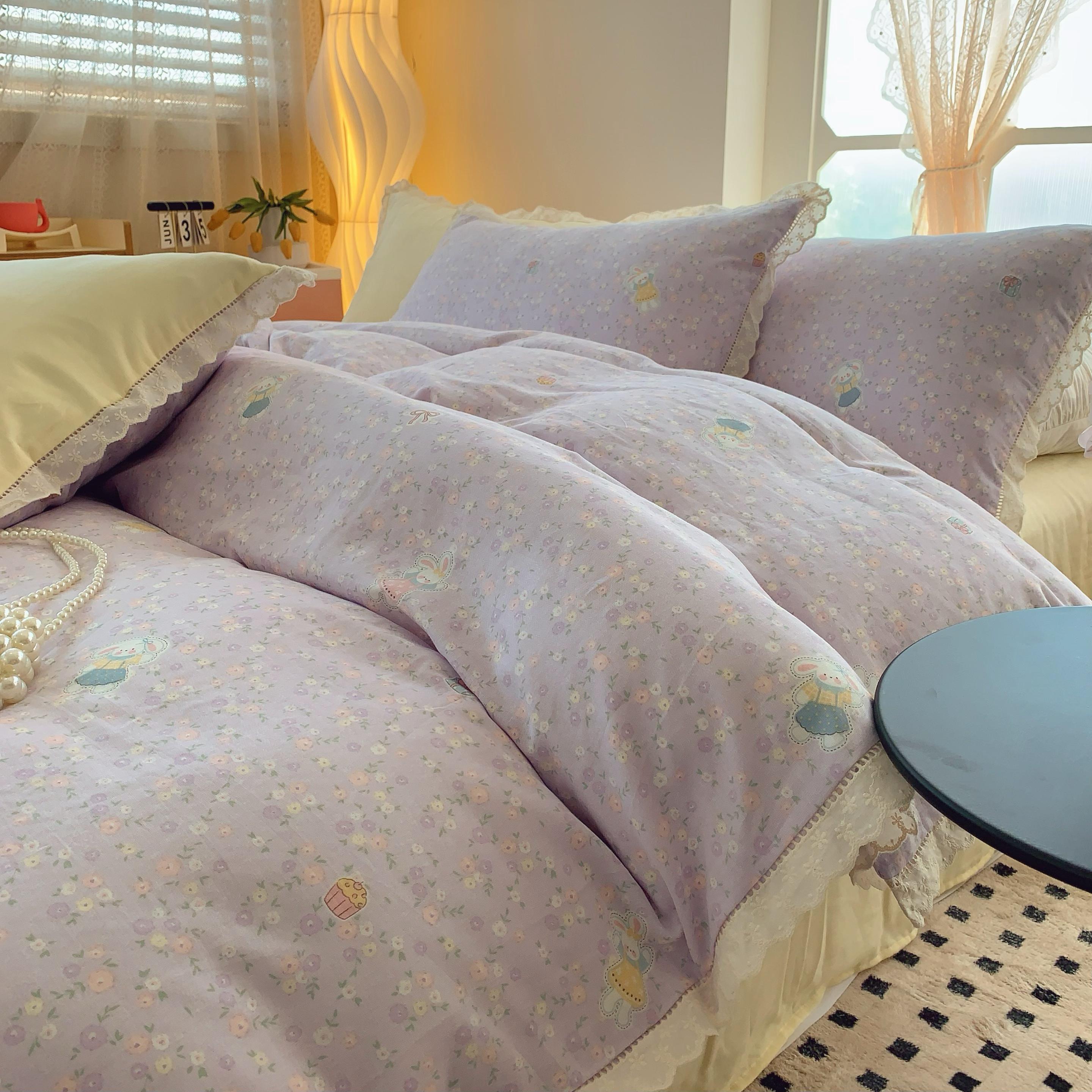 奈萝家纺 2025新款全棉双层纱花边款四件套 可爱兔仔