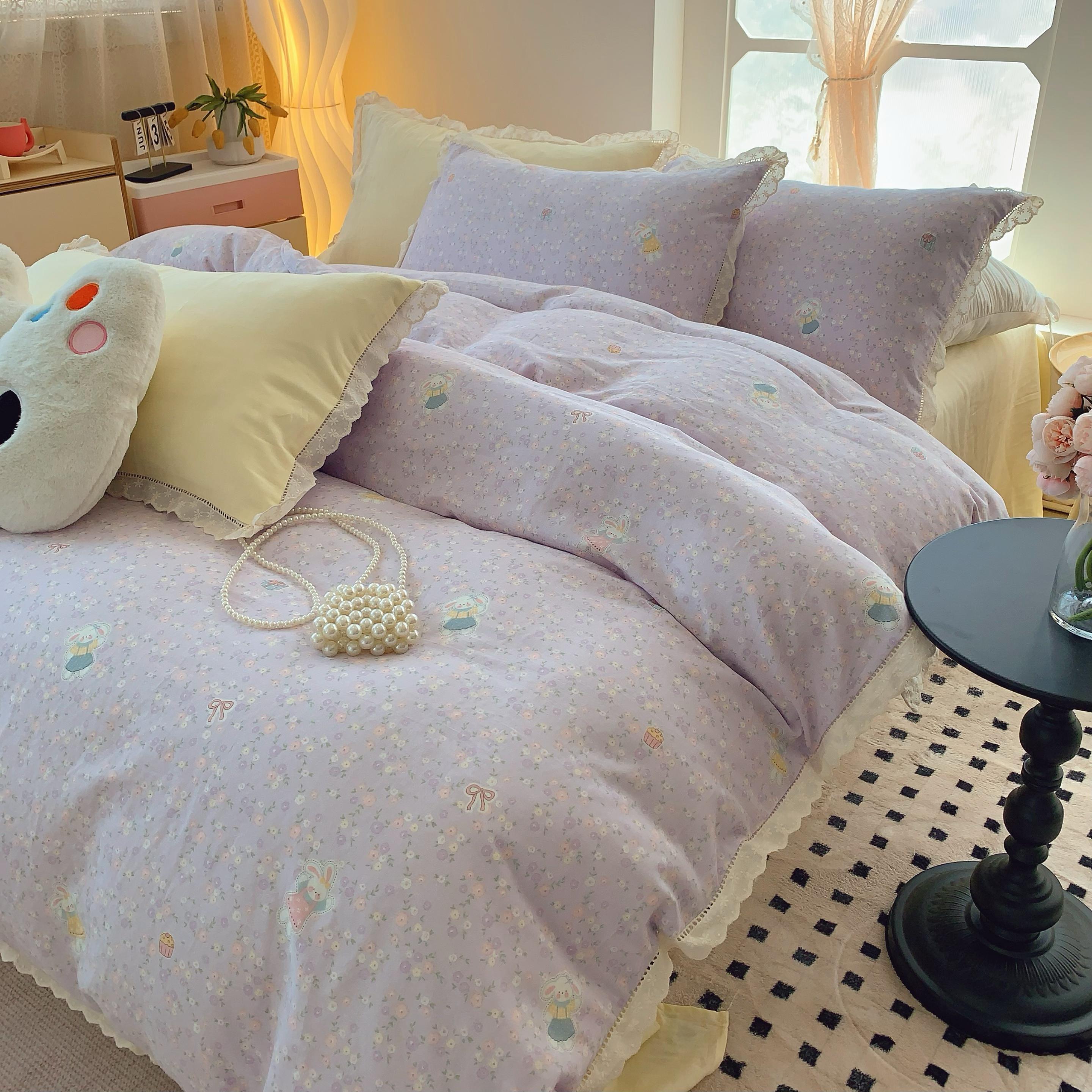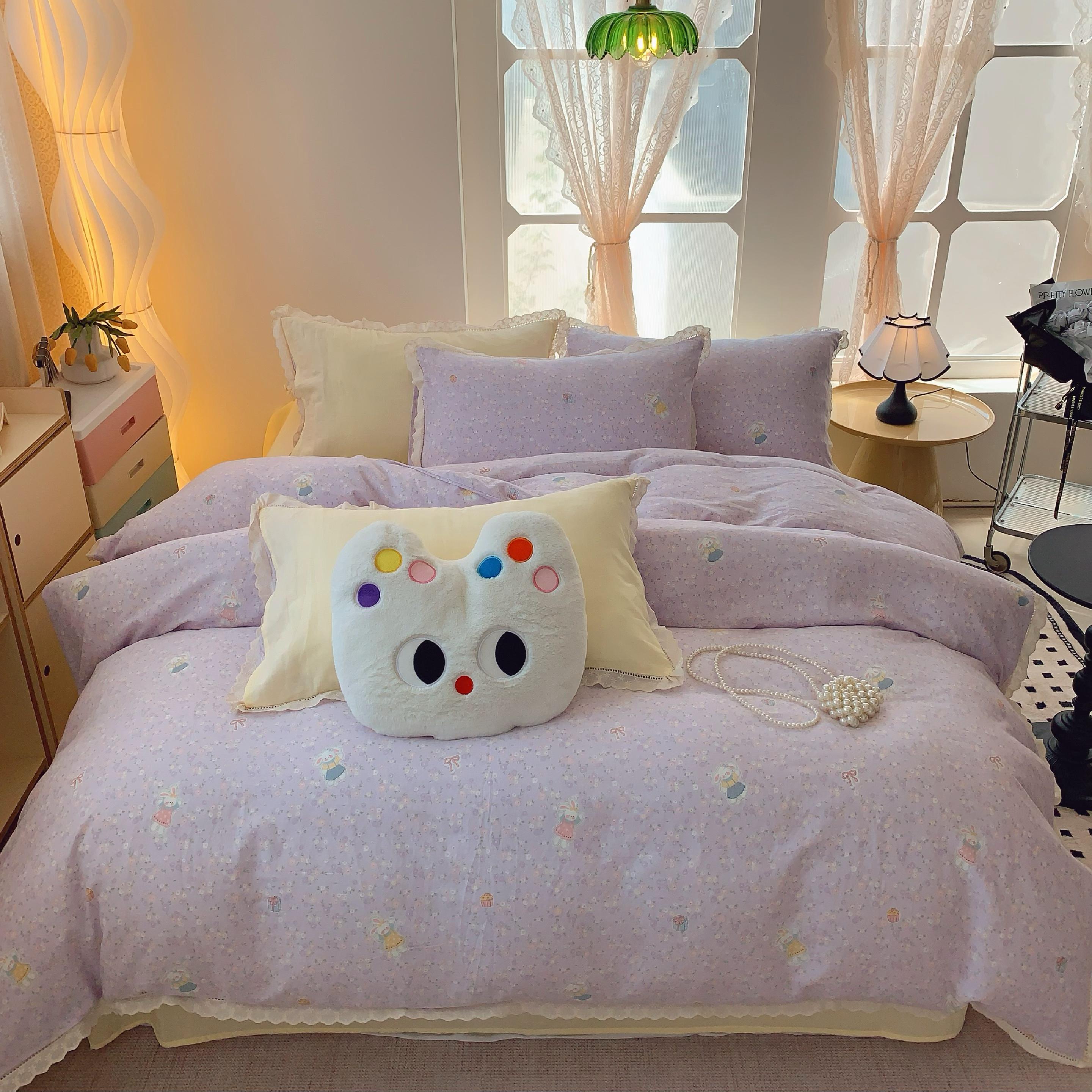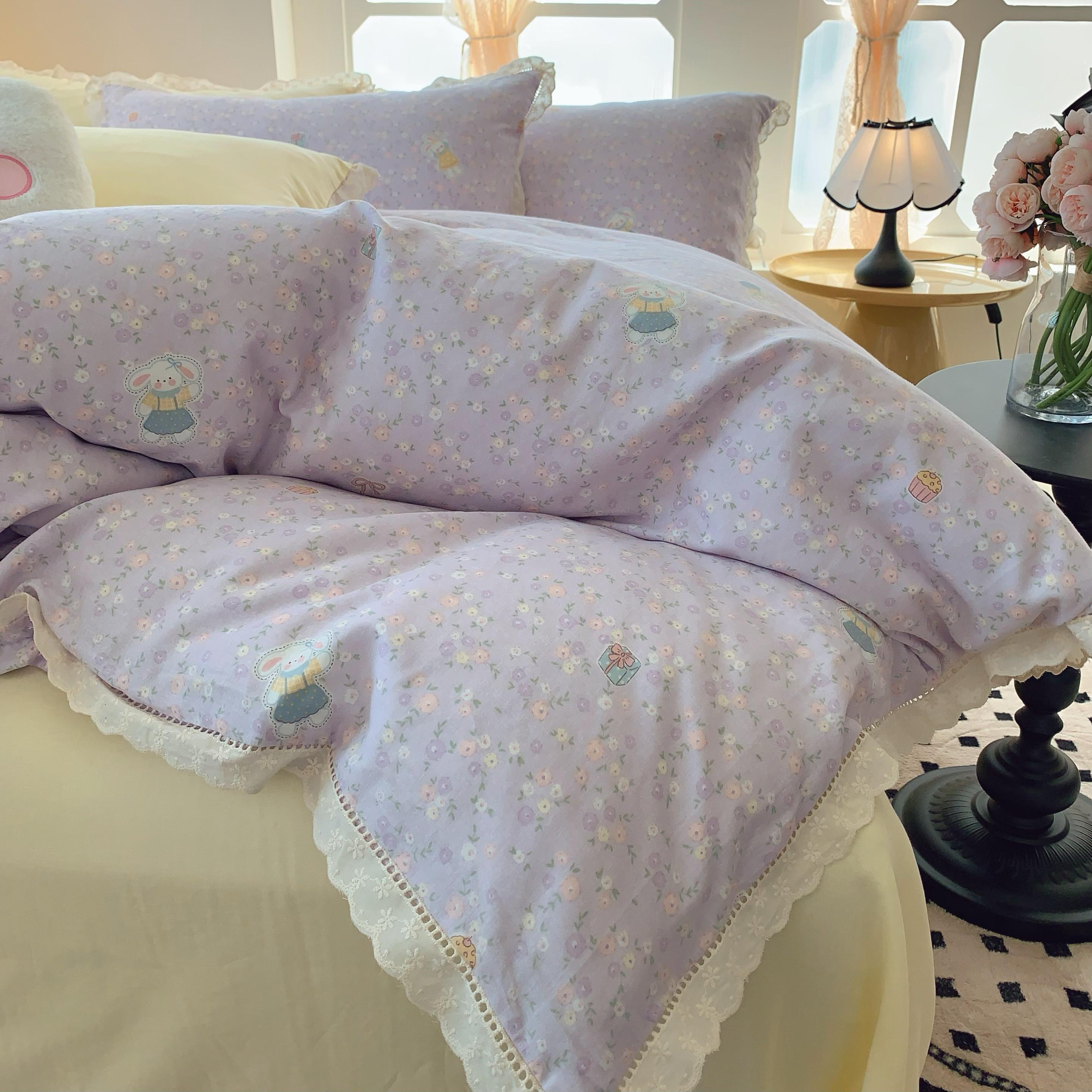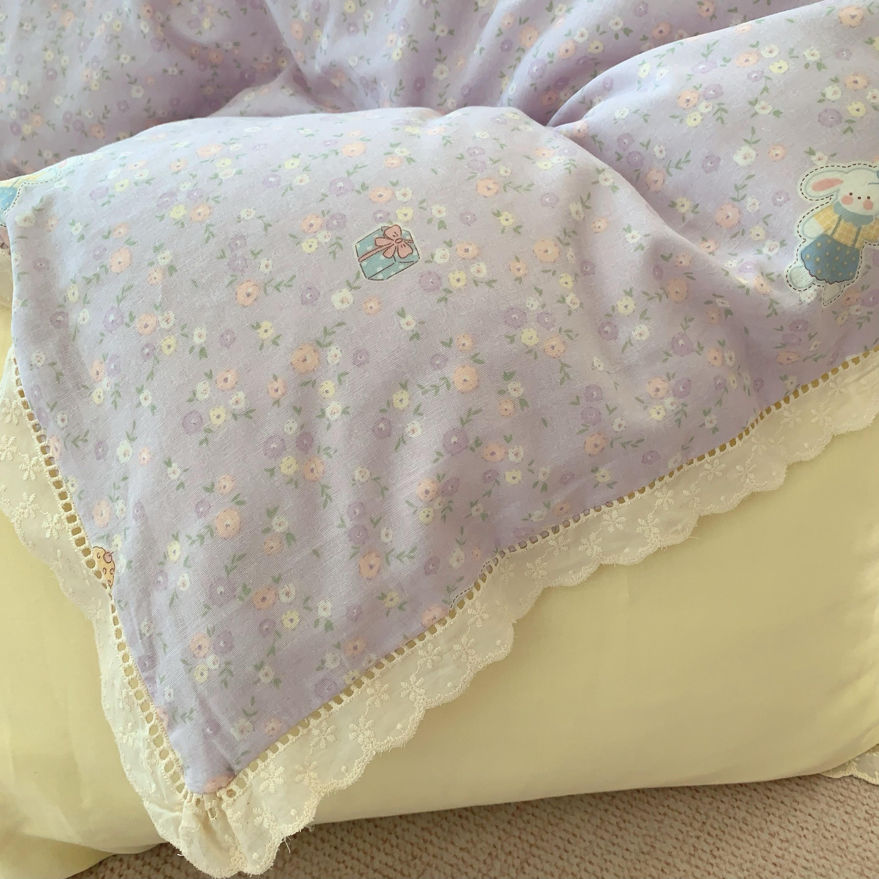 奈萝家纺 2025新款全棉双层纱花边款四件套 可爱兔仔