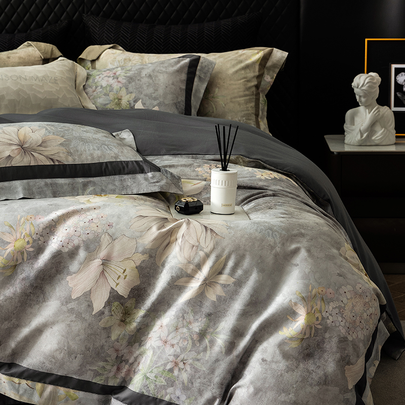 威克凯丽 2024新款长绒棉数码印花100S磨毛双拼四件套 华丽世-B莫兰迪绿