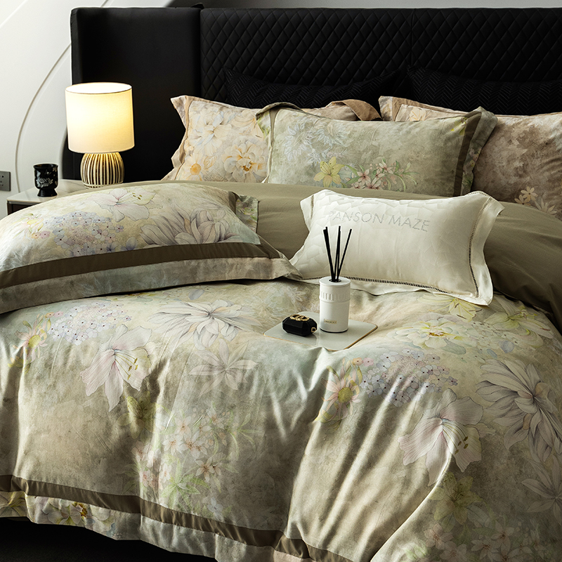 商品名称:威克凯丽 2024新款长绒棉数码印花100S磨毛双拼四件套 华丽世-B莫兰迪绿