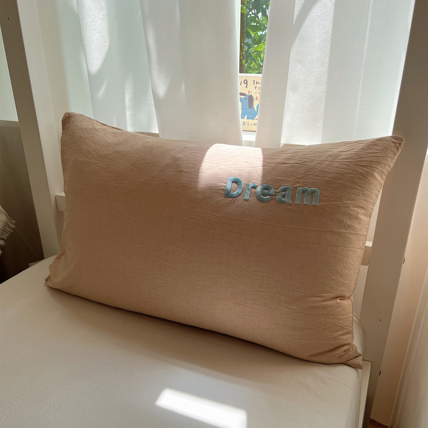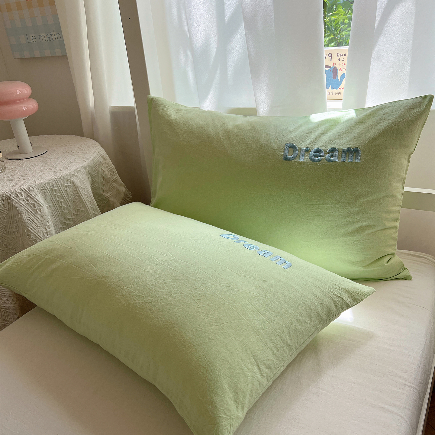 丽涵家纺 2025新款全棉纯棉色织水洗棉刺绣单品枕套枕套单件单枕套-常规单人款 韵律-粉+好梦-粉