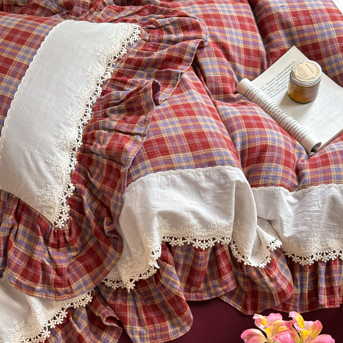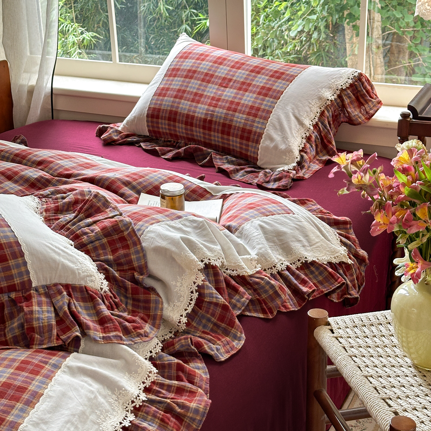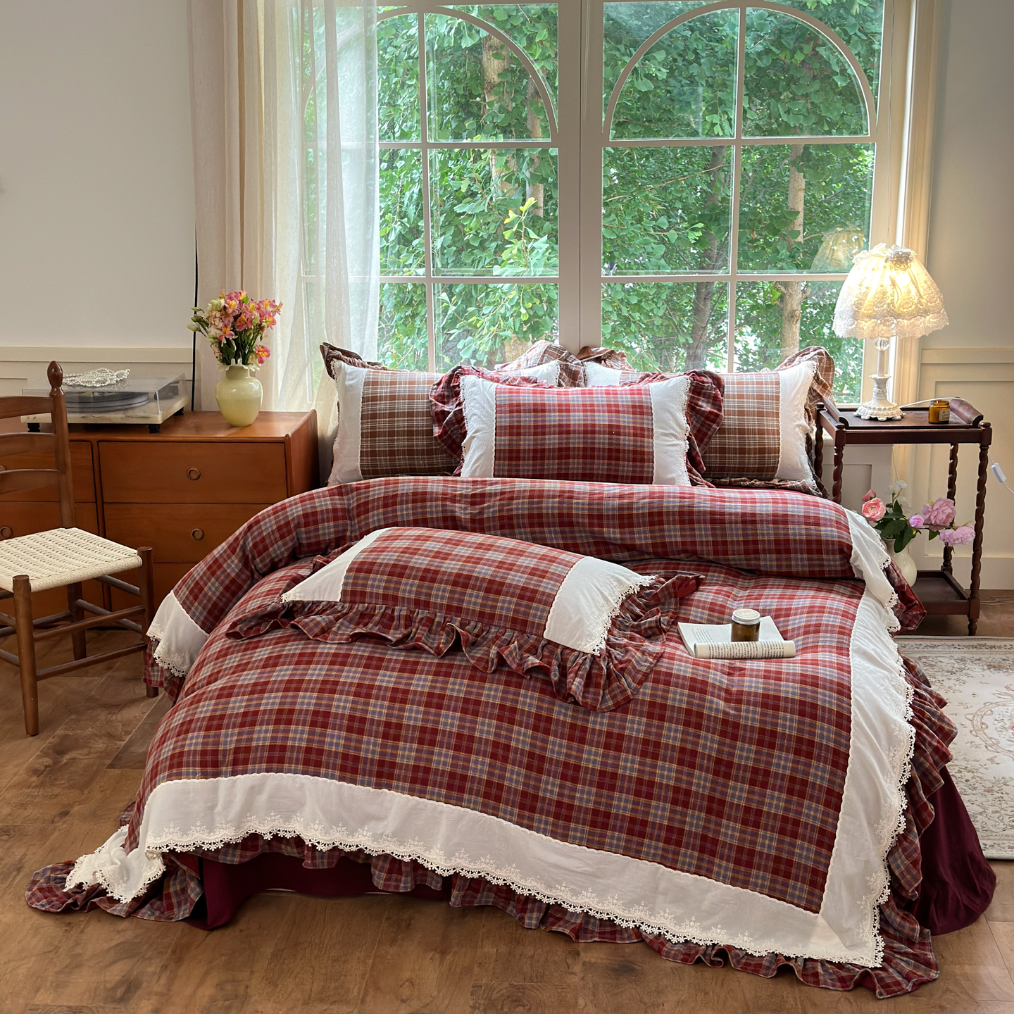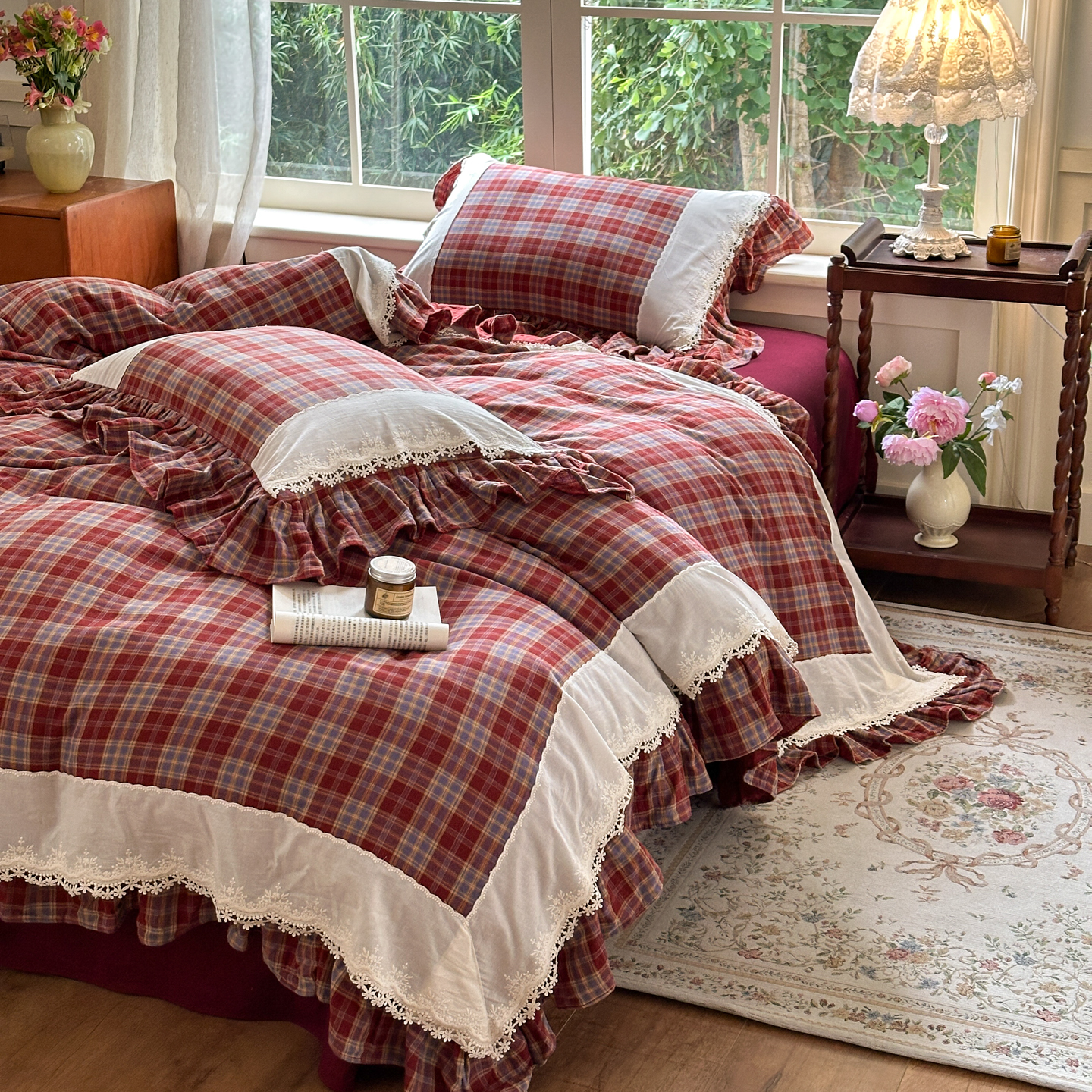(总)淑女公社2025春夏新款法式色织双层纱四件套