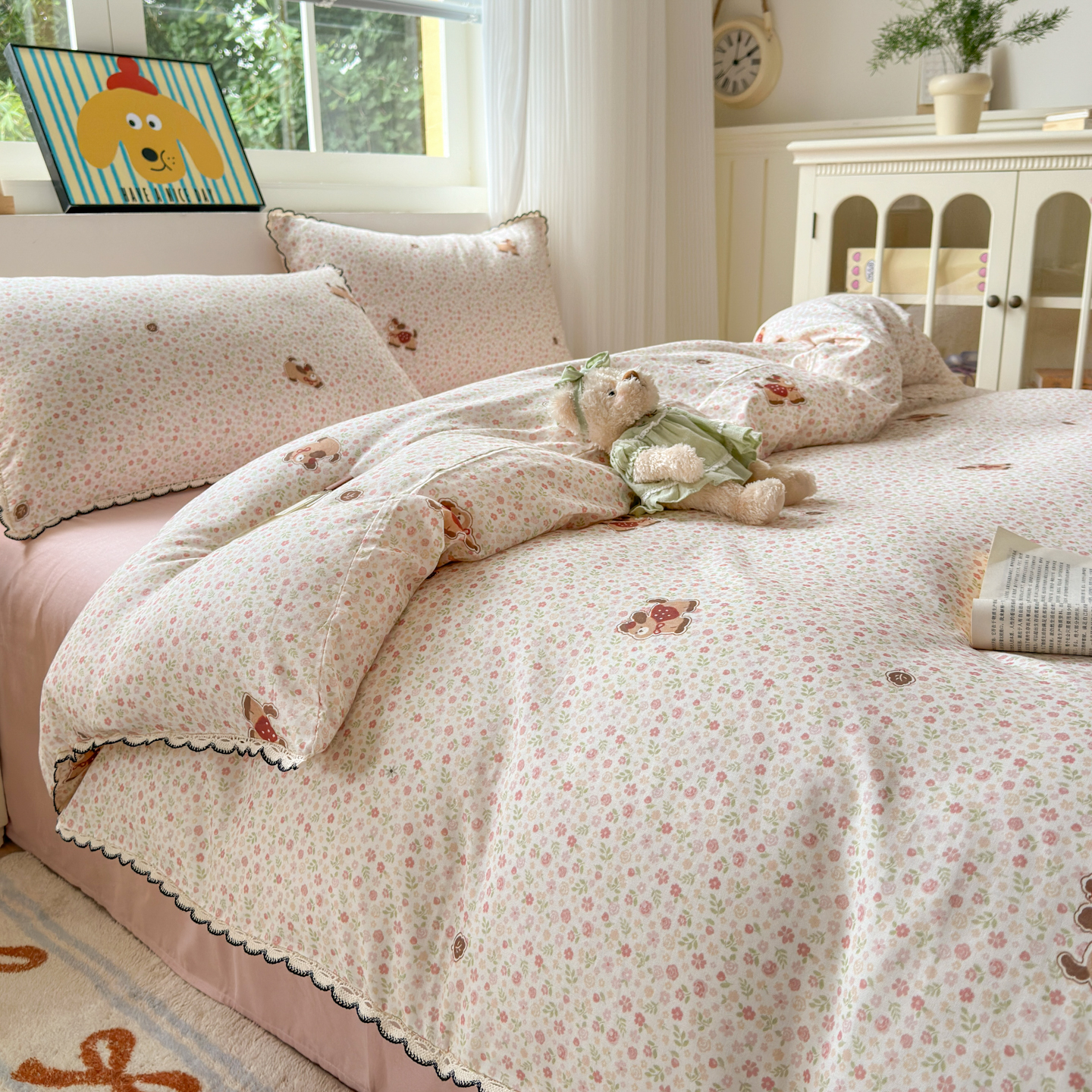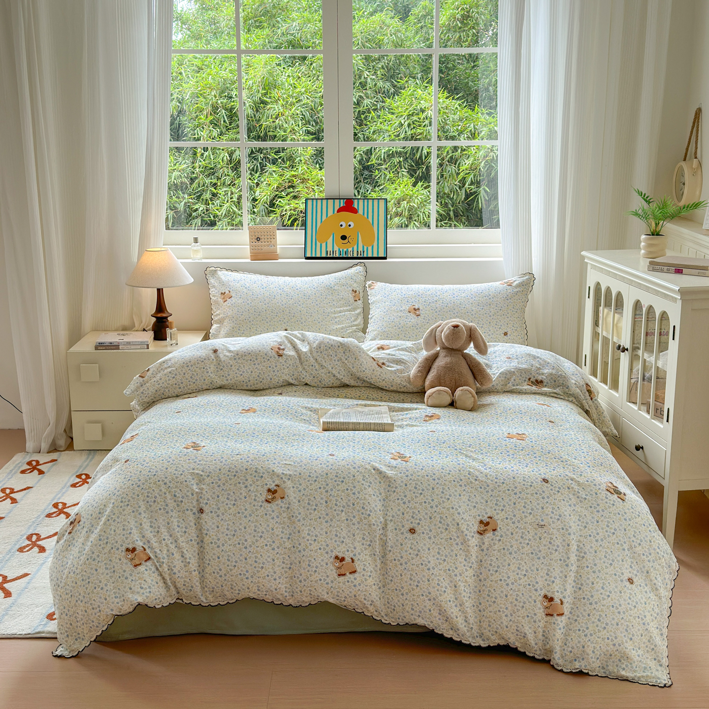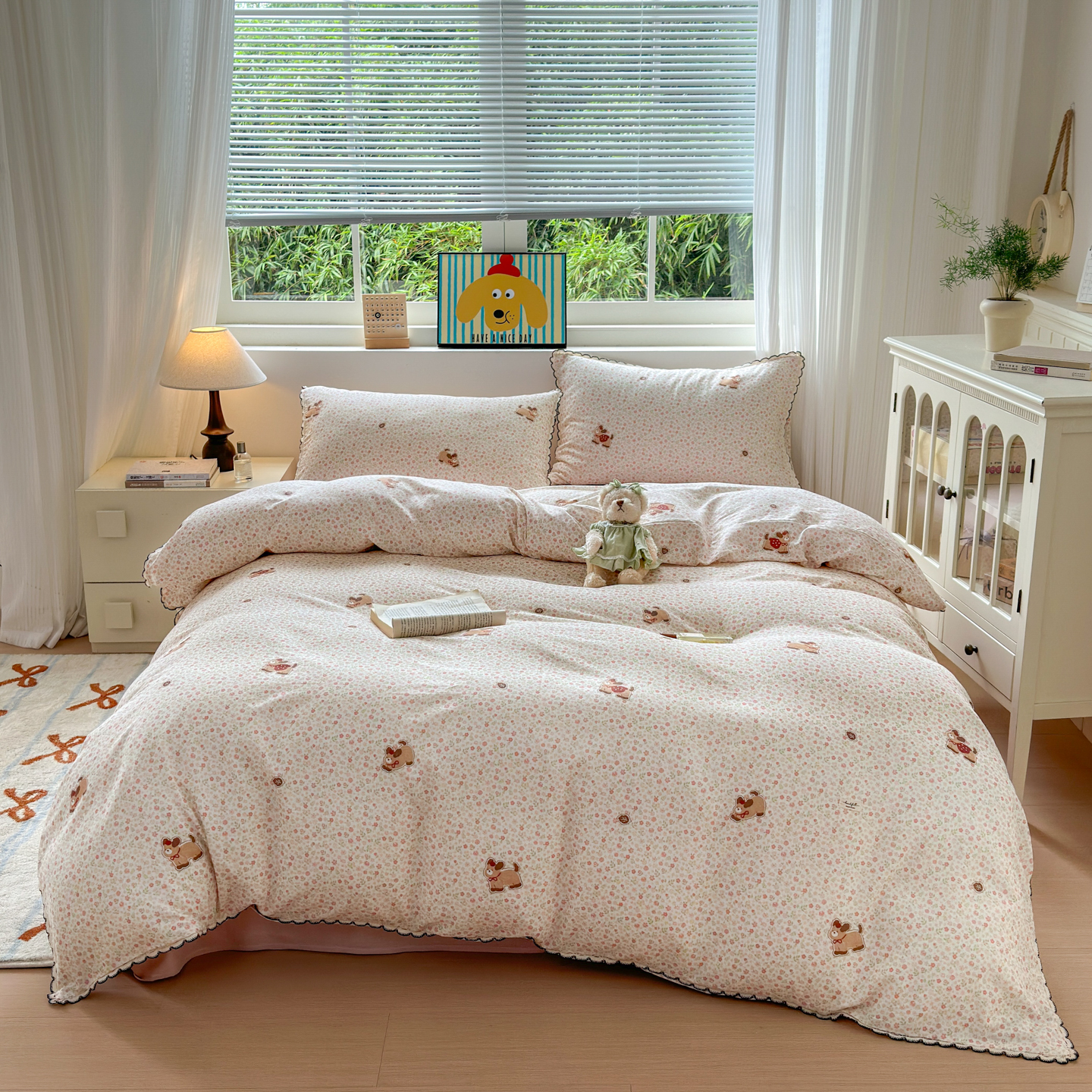 当前位置: 91家纺网 > 商品网购 > 床品套件 > 四件套 > 双层纱四件套 > 淑女公社家纺 2025四季款全棉纯棉双层纱小香风四件套 腊肠狗 小蓝花