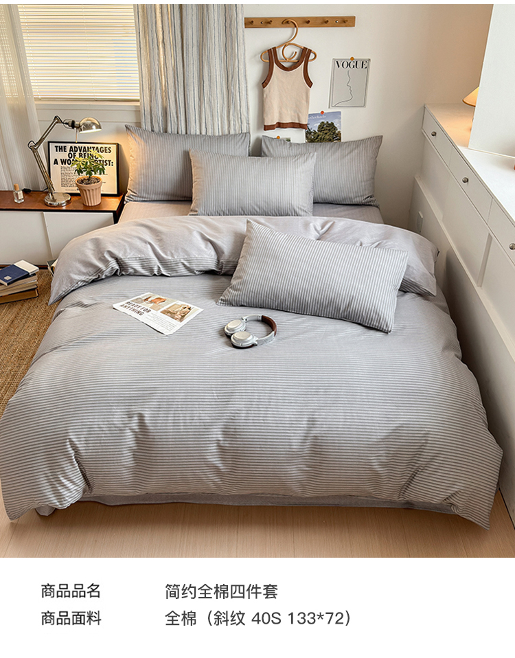 当前位置: 91家纺网 > 商品网购 > 床品套件 > 四件套 > 全棉普通四件套 > 麦伦家居 2025春夏新款全棉纯棉斜纹40s13372系列-简约条格系 绅士之约