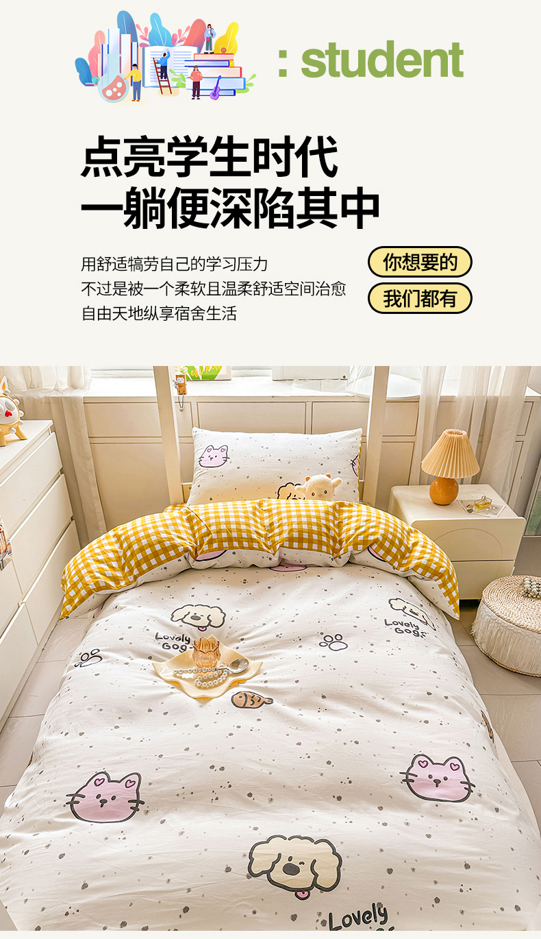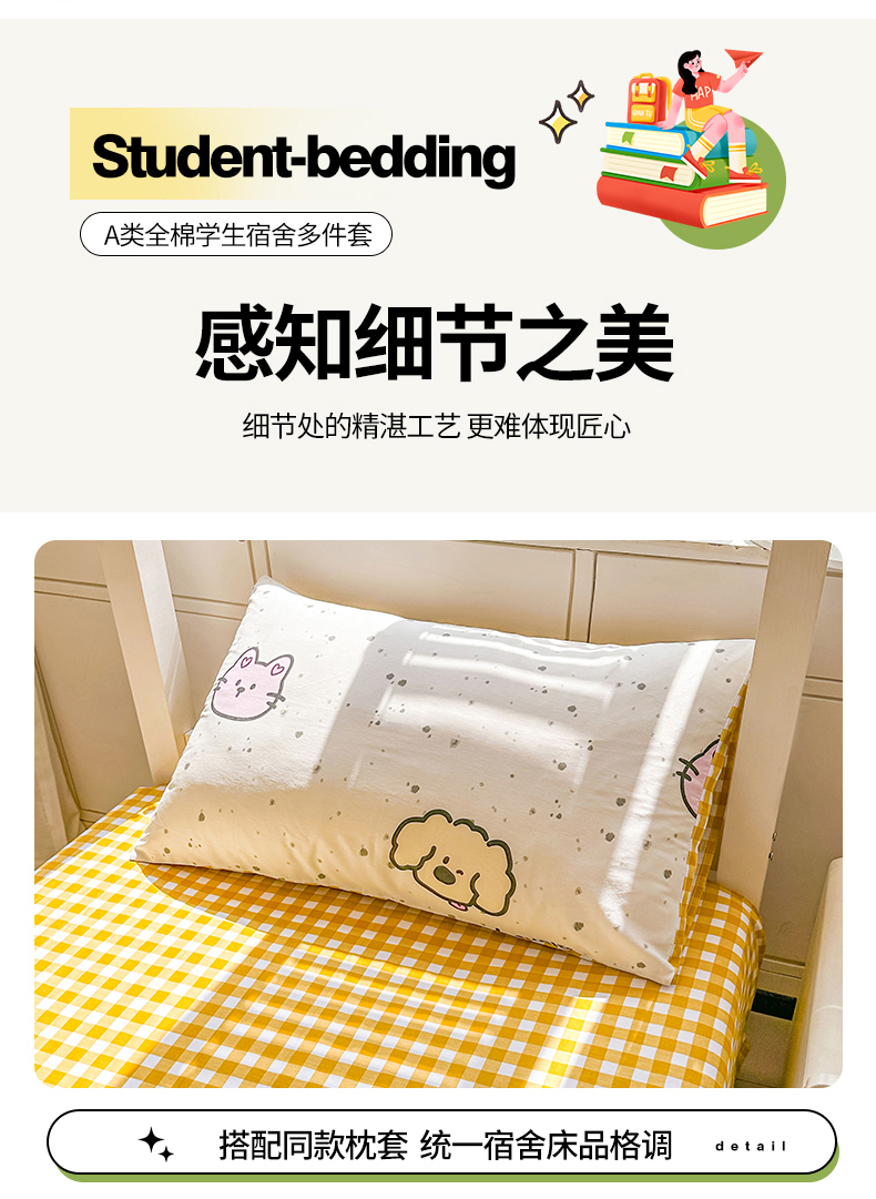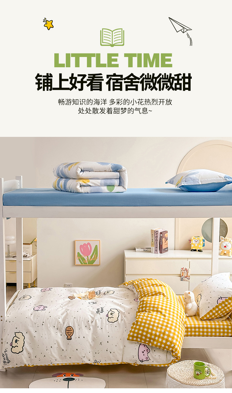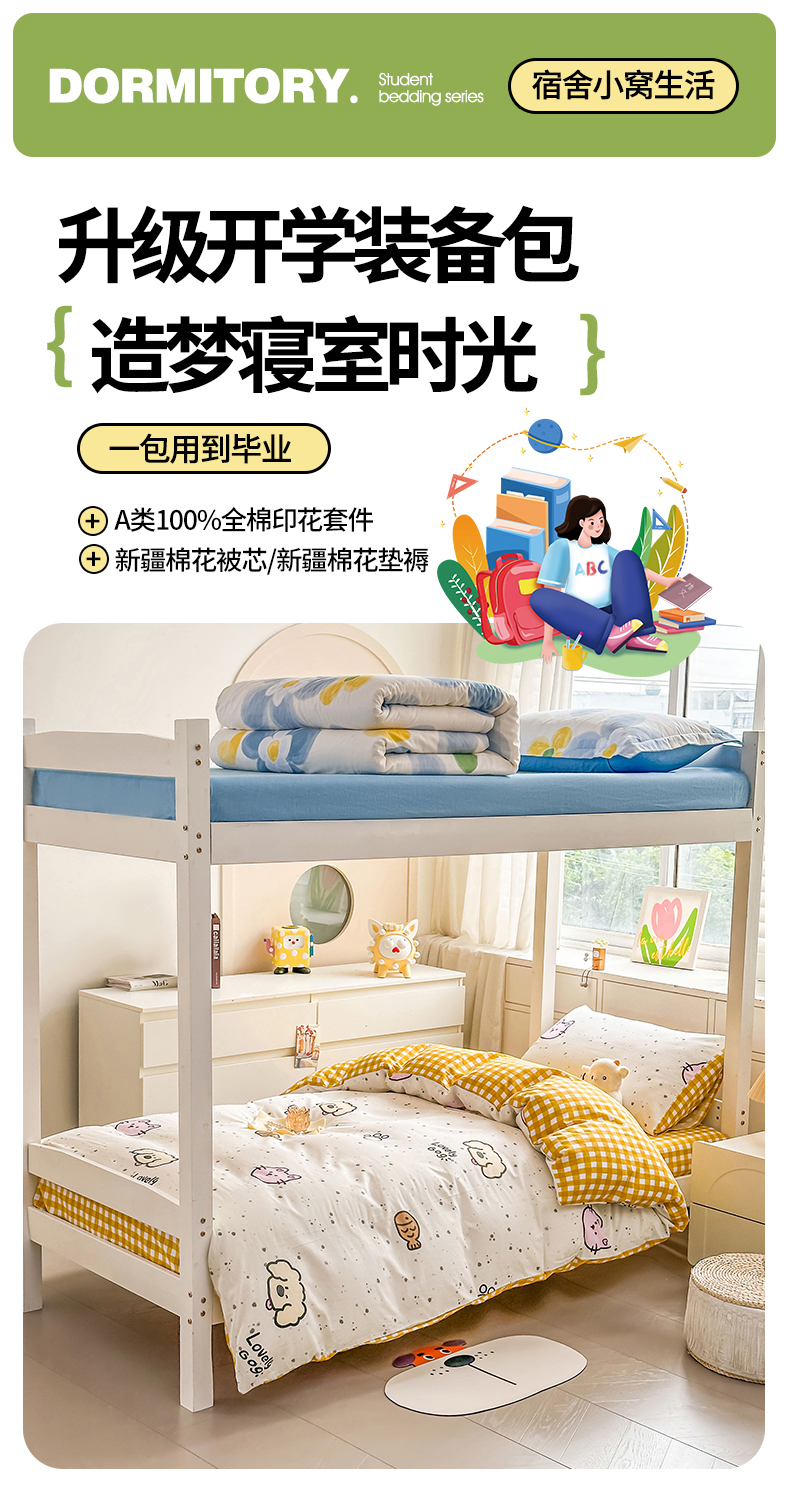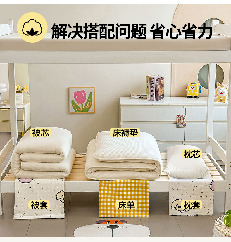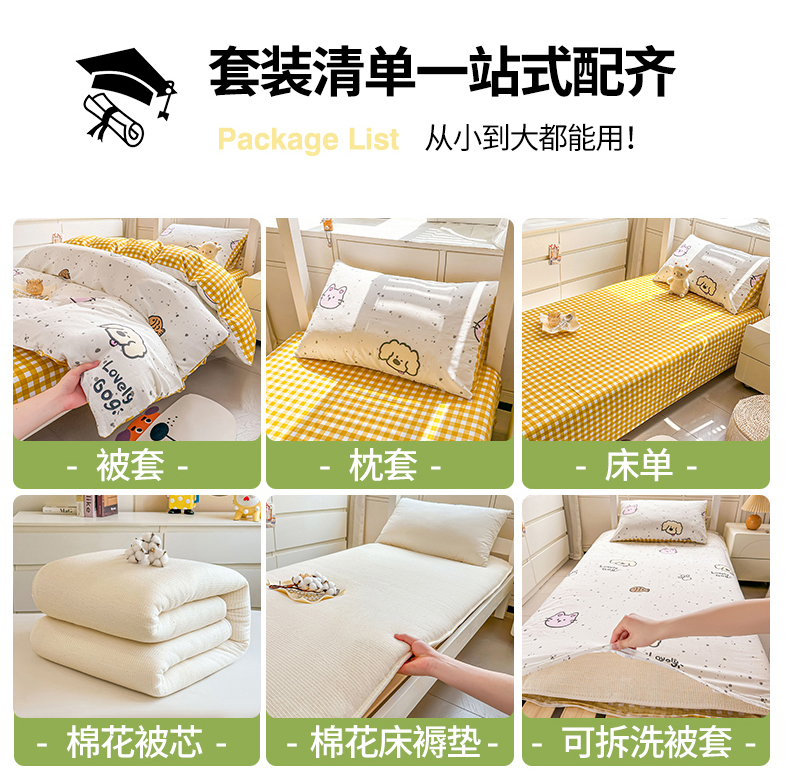 商品名称:西域种棉人·千百笠 2025新款全棉纯棉六件套大学生宿舍100%新疆棉花被子被褥一整套枕头床垫三件套 可爱猫
